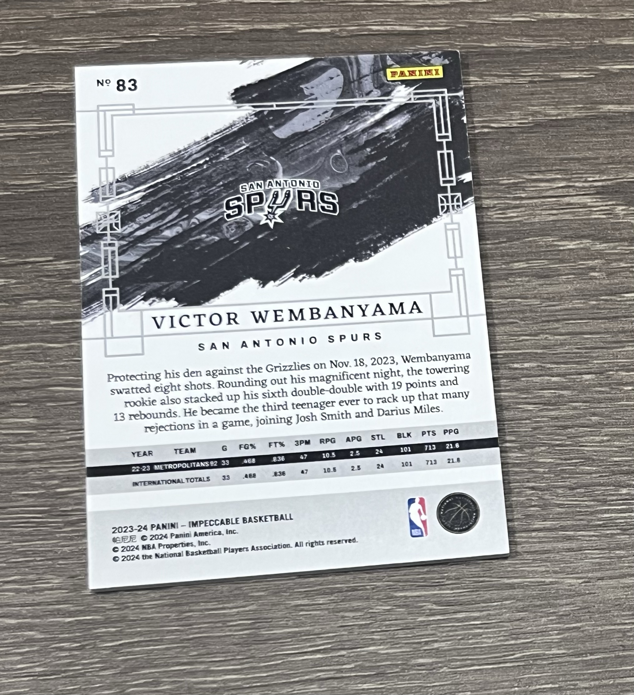 2023-24 Panini Impeccable Victor Wembanyama RC 小真金 新秀RC 维克托 文班亚马 马刺秀 天赋怪兽 独角兽 盖帽王 新秀一阵 银版 base /75