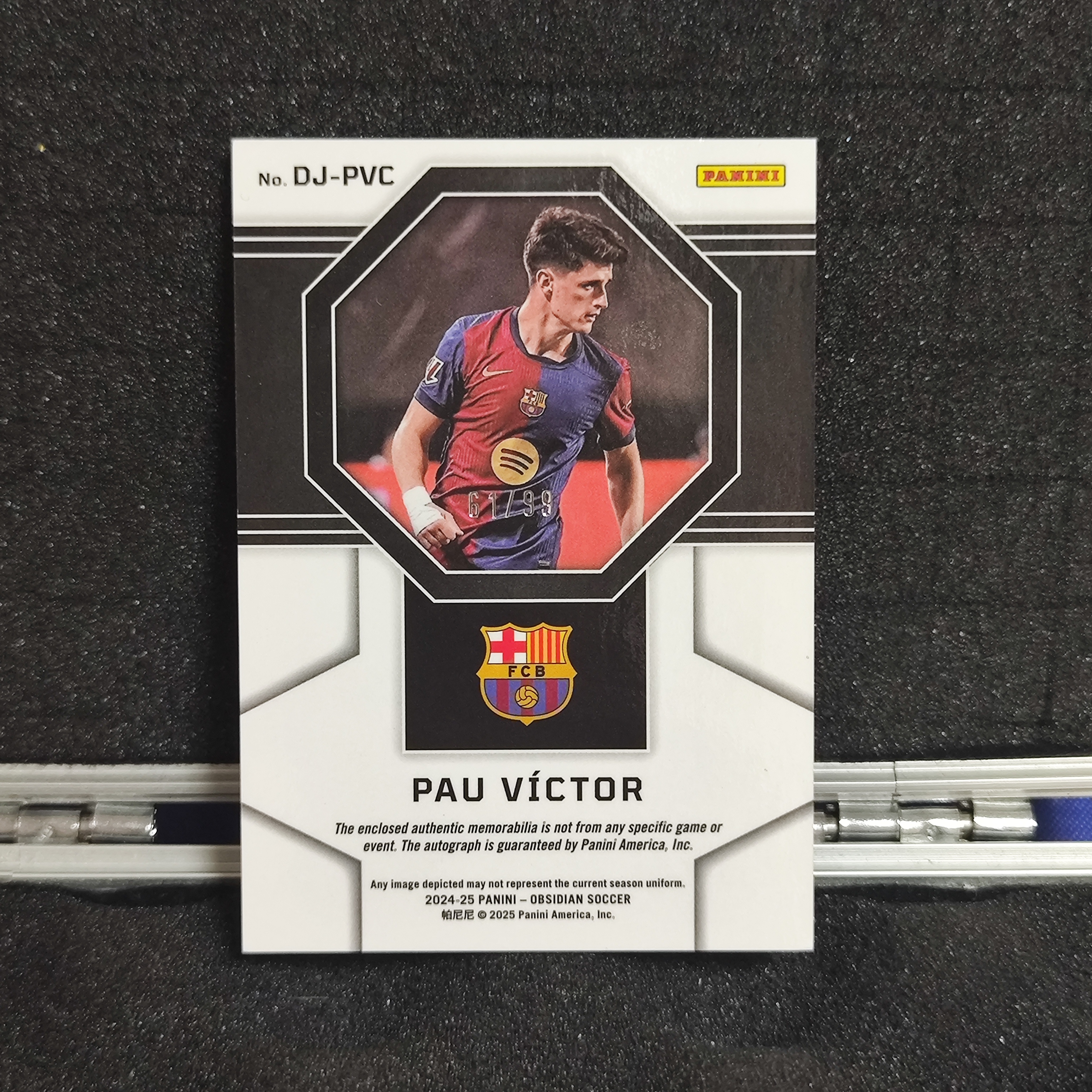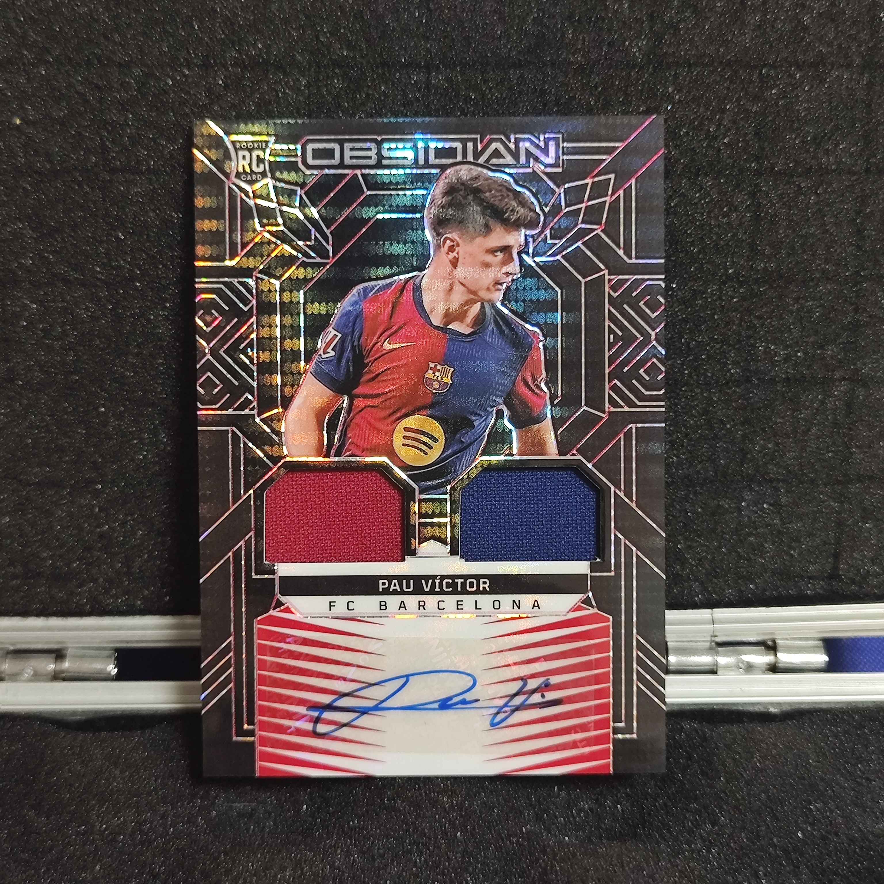 2024-25 Panini Obsidian Pau Victor RC 黑曜石 保 维克托 /99编 双色物料签字 脉冲折射 西班牙 巴萨 巴塞罗那新秀 双窗球衣 亚马尔莱万队友 卡品如图 公羽