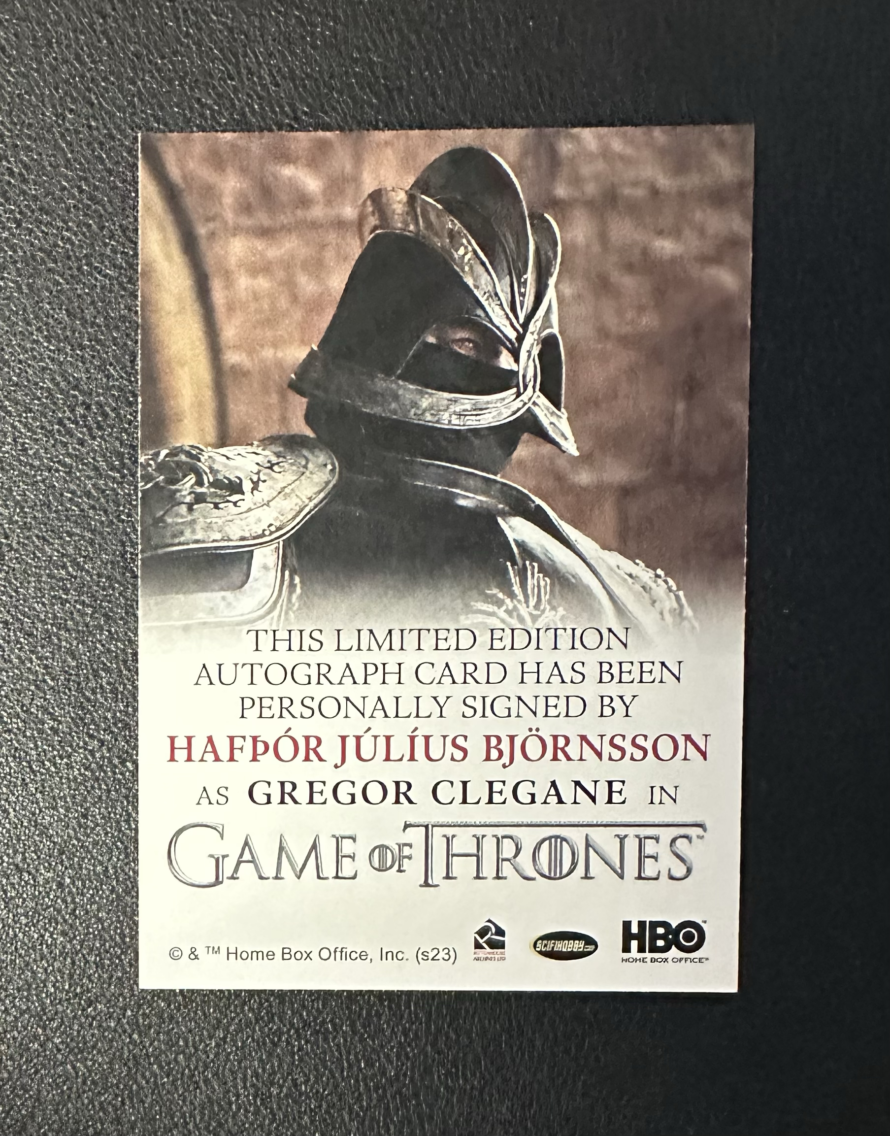 2023 Game of Thrones 权游 权力的游戏 HBO 演员签字 Auto 卡签 Hafþór Júlíus Björnsson(哈夫托・尤利乌斯・比约恩松)饰 魔山 LWDG 卡品如图