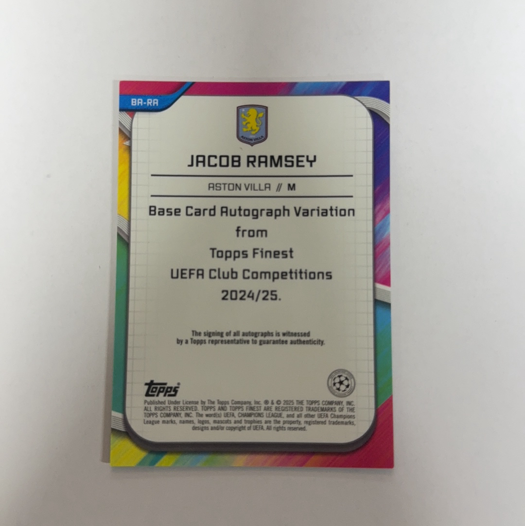 2025 Topps Finest Jacob Ramsey 欧冠欧战 拉姆塞 阿斯顿维拉 签字 199编 紫shimmer折 卡品如图 收藏必备(南阳)