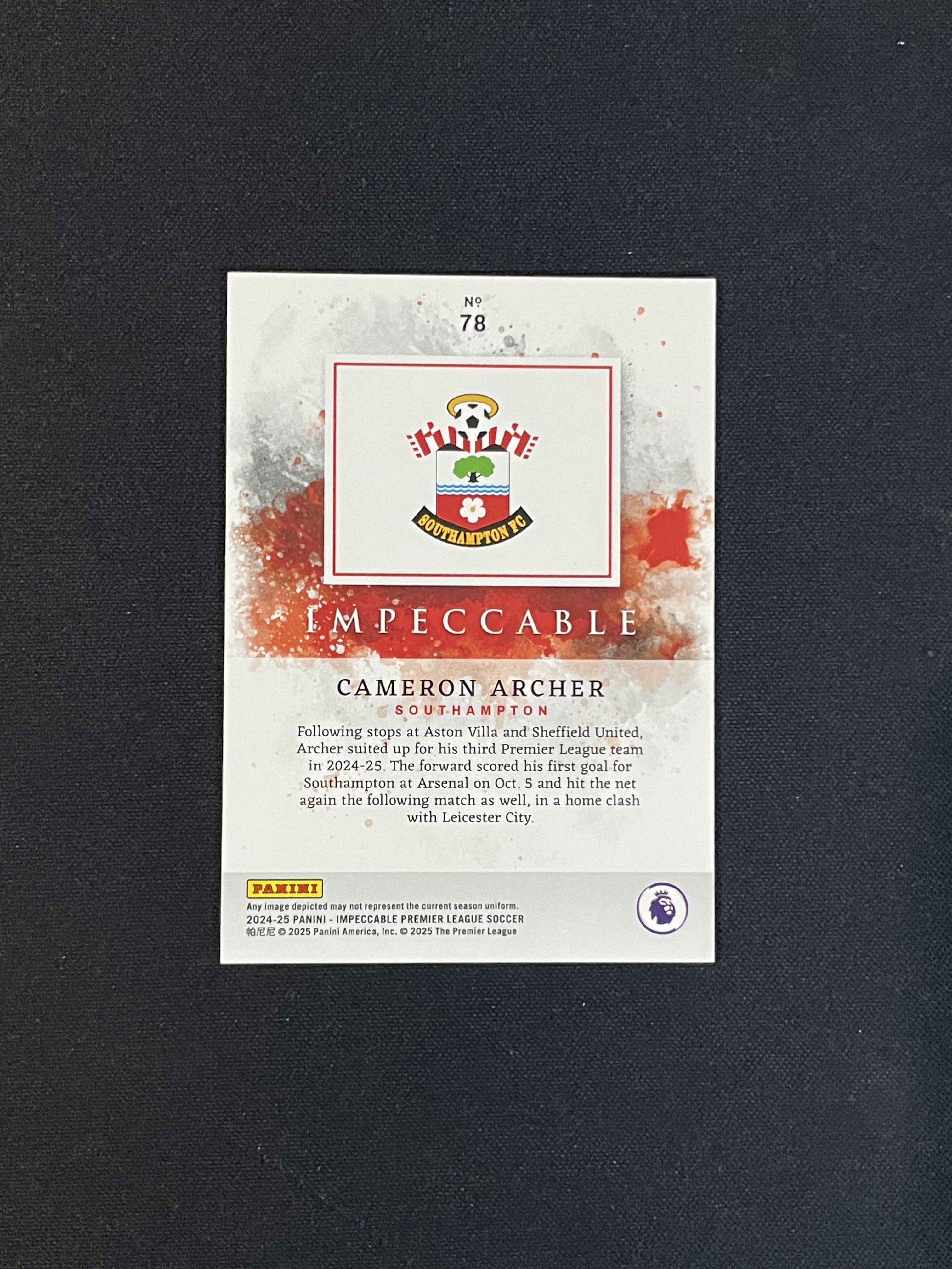 2024-25 Panini Impeccable Cameron Archer 英超小真金 南安普顿 阿彻 /20编 金平行 英格兰前锋 潜力无限 卡品细节如图 #免费代拍欢迎咨询