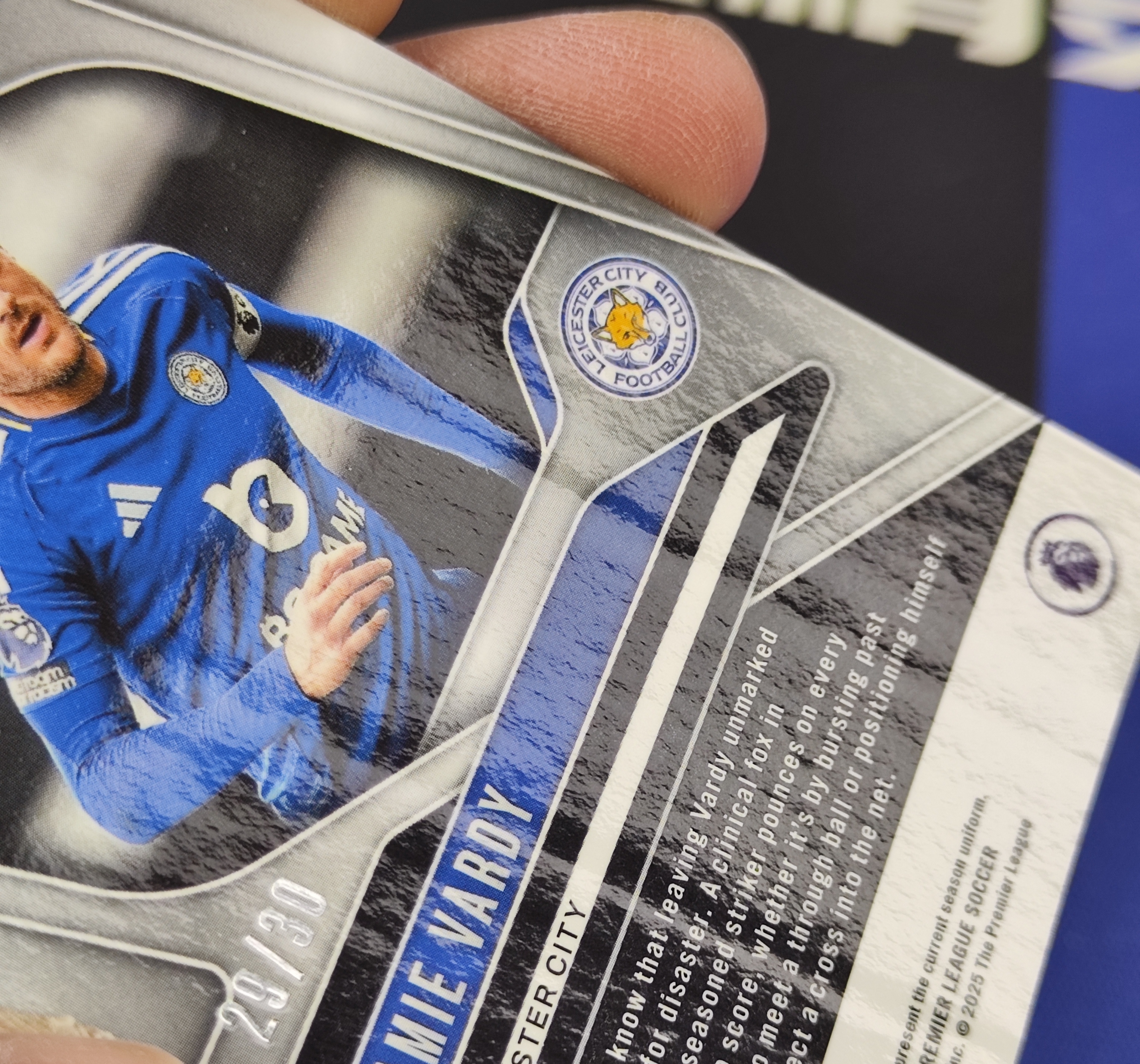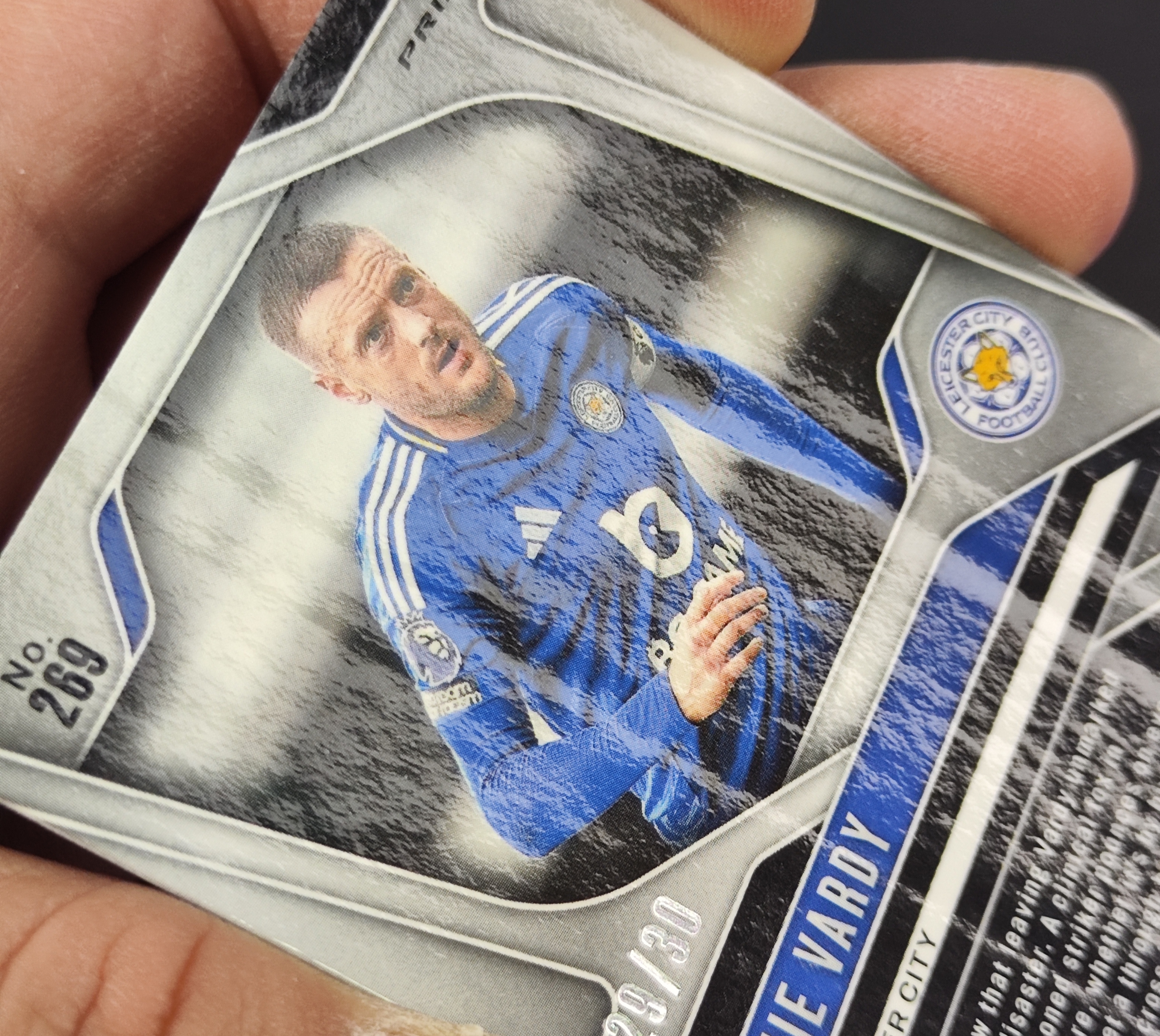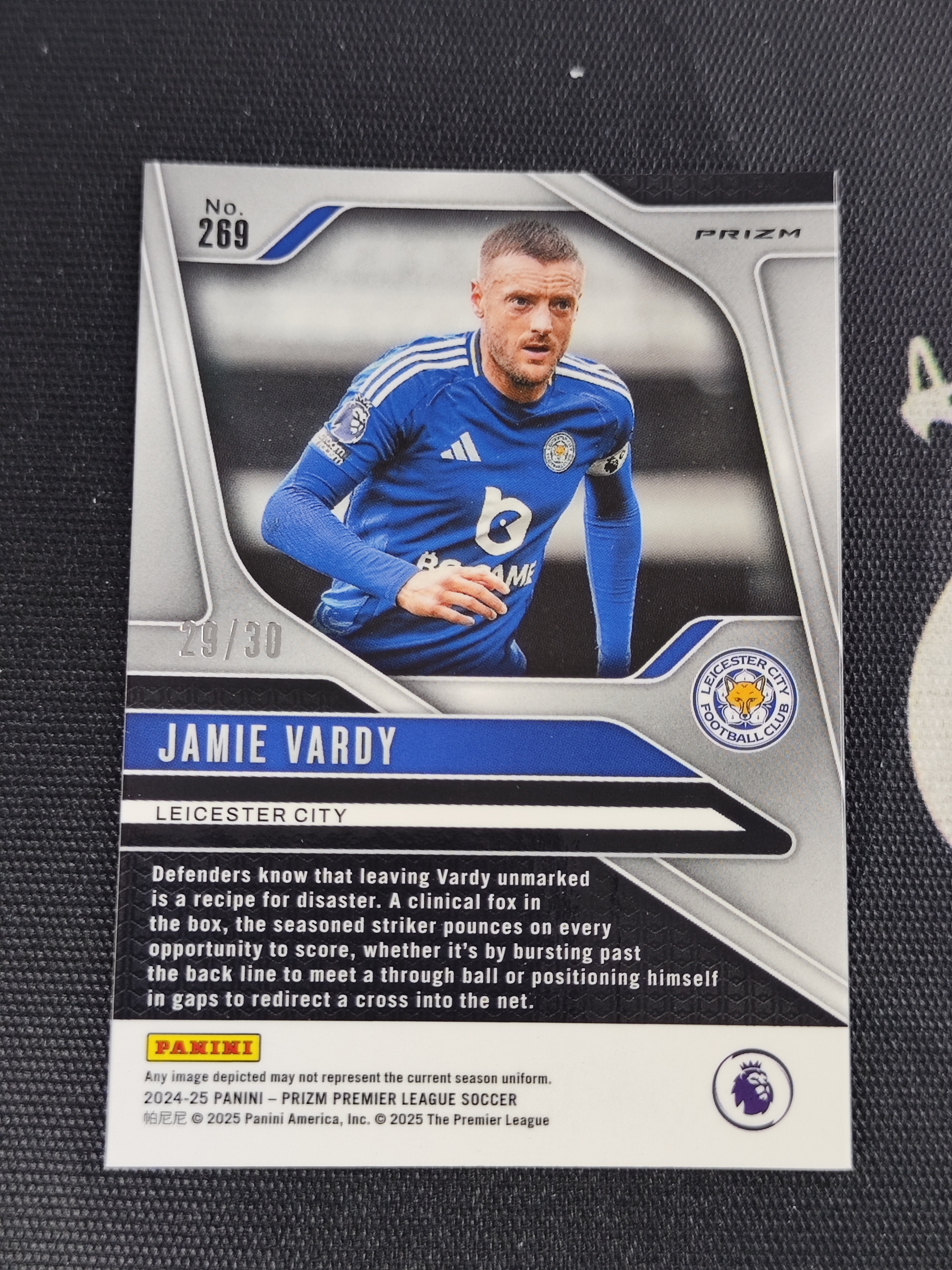 2024-25 Panini Prizm Jamie Vardy 【蓝黑精灵卡社】英超Prizm PZ 莱斯特城 英格兰 前锋 瓦尔迪 29/30编 choice 红圈圈折 收藏必备 微瑕如图 仙林落日