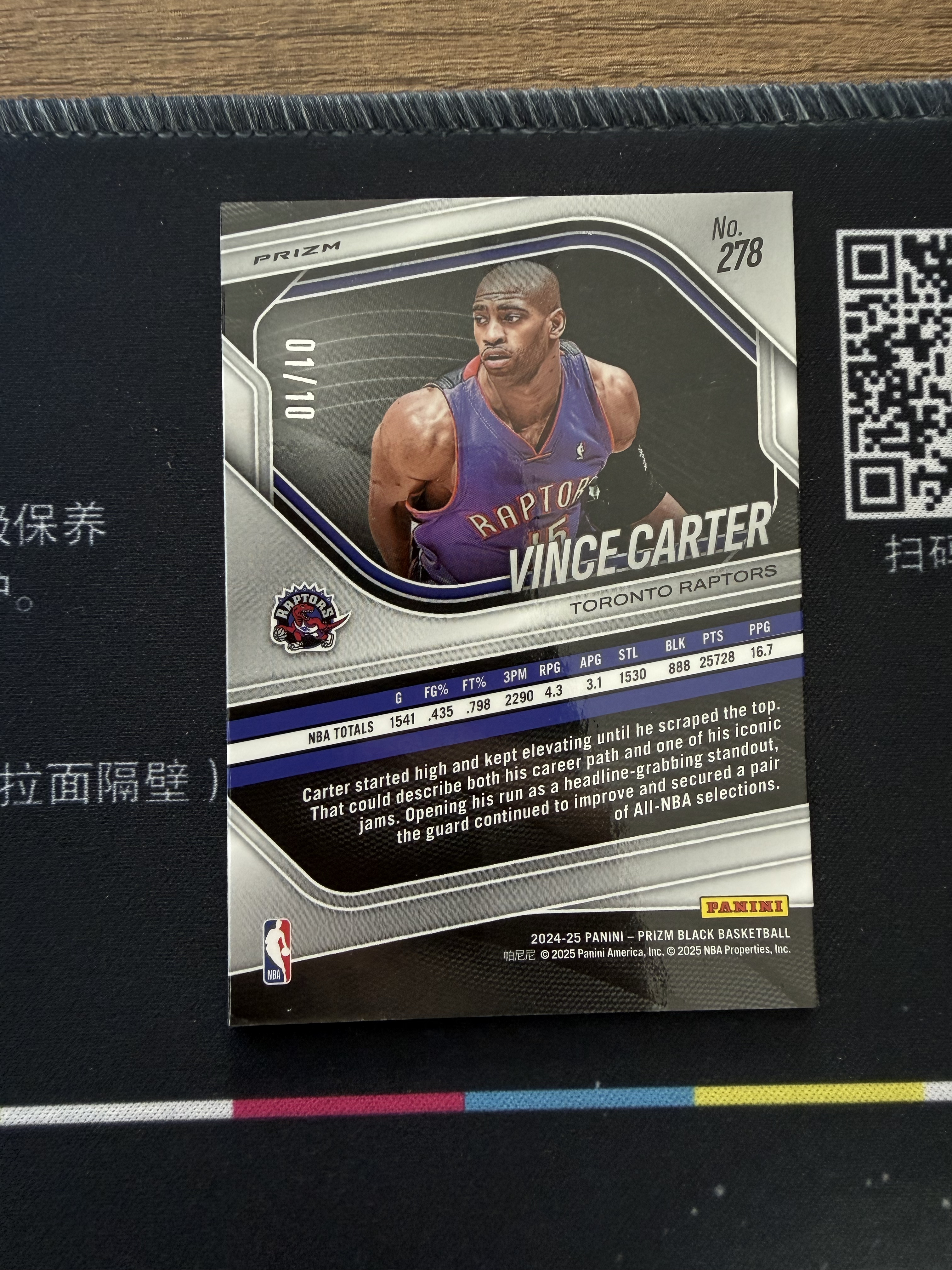 2024-25 Panini Prizm black Vince Carter 末年pz 名人堂 猛龙 文斯卡特 10编 01/10 首编 金 卡品如图 专收必备!实卡美如画