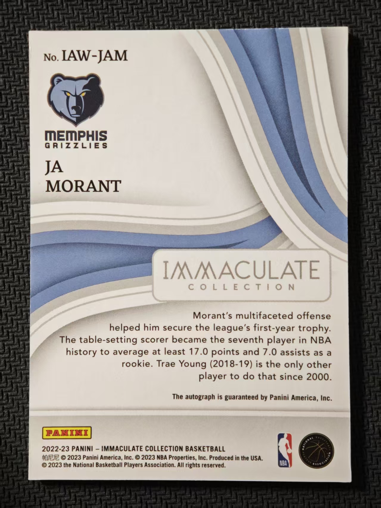 2022-23 Panini Immaculate Ja Morant imm 灰熊 贾 莫兰特 /25编 年度最佳新秀捧杯 折射 签字卡签 收藏必备 卡片如图