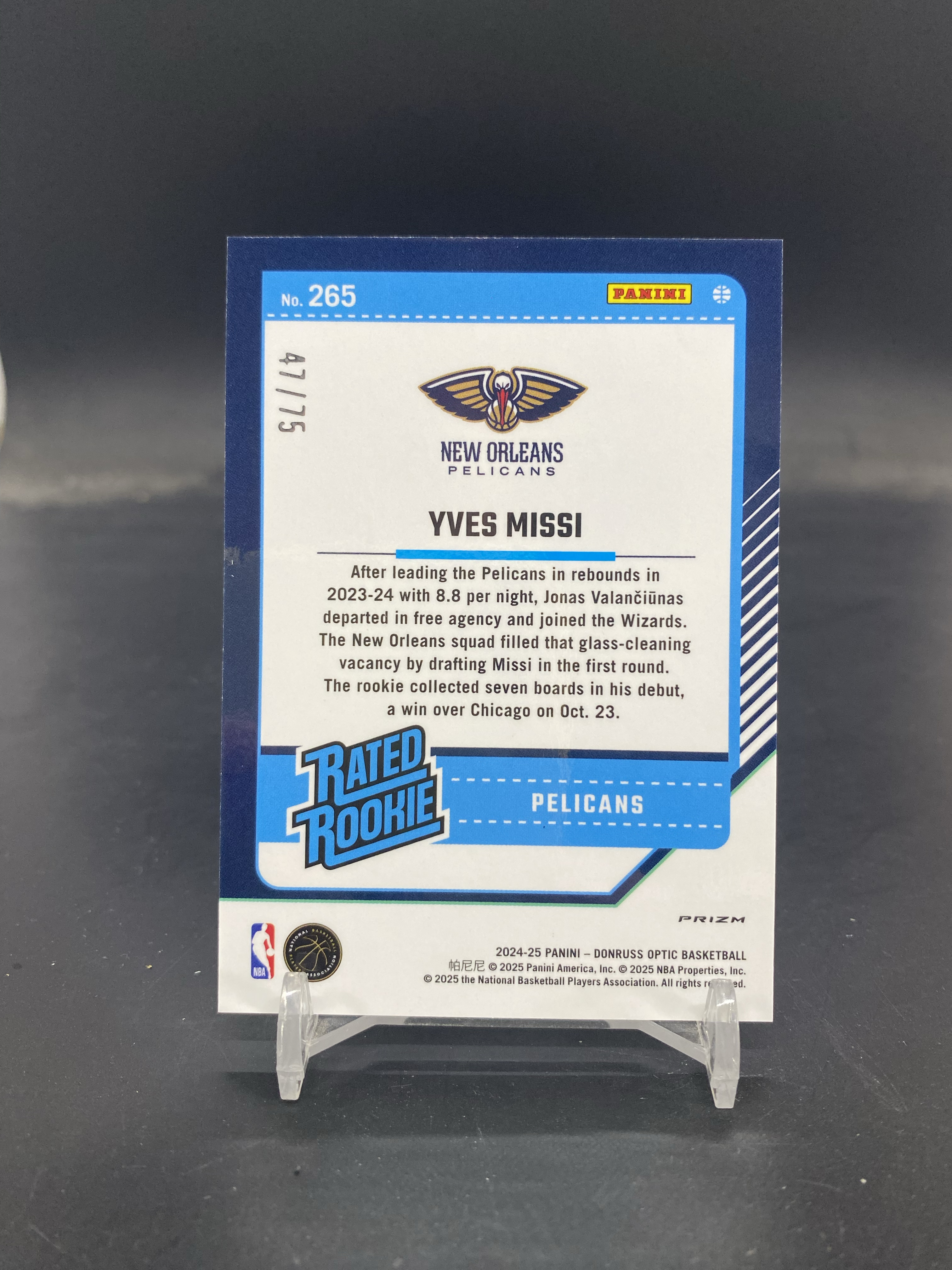 2024-25 Panini Optic Yves Missi RC 鹈鹕 新秀 伊夫 米西 47/75编 电力圈圈折 折射 卡品如图AR-109「80」