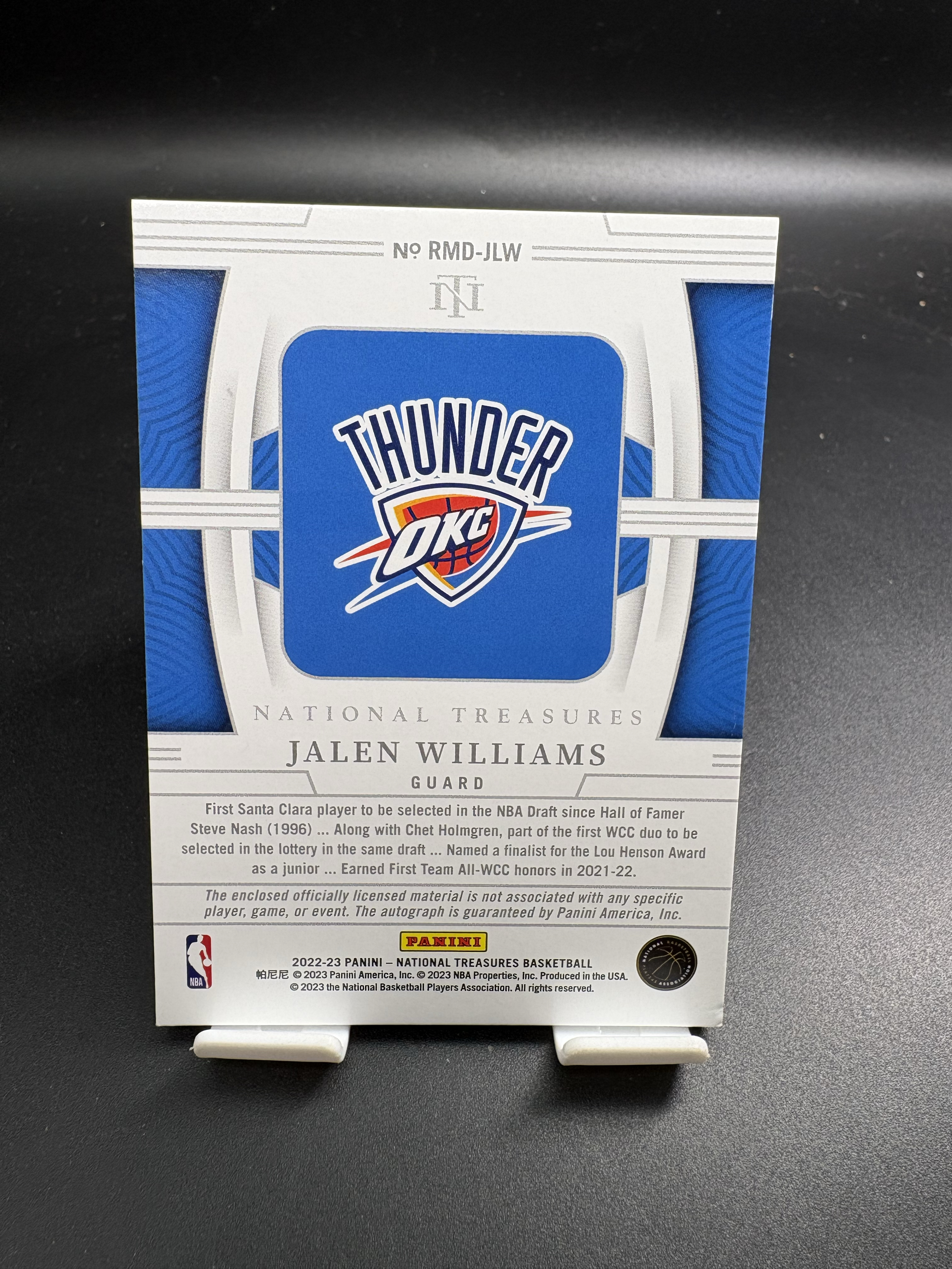 2022-23 Panini National Treasures Jalen Williams RC 【拉姆代卖】 杰伦 威廉姆斯 25编 新秀 签字 卡签 双窗RPA 球衣 物料 卡品如图【bo】