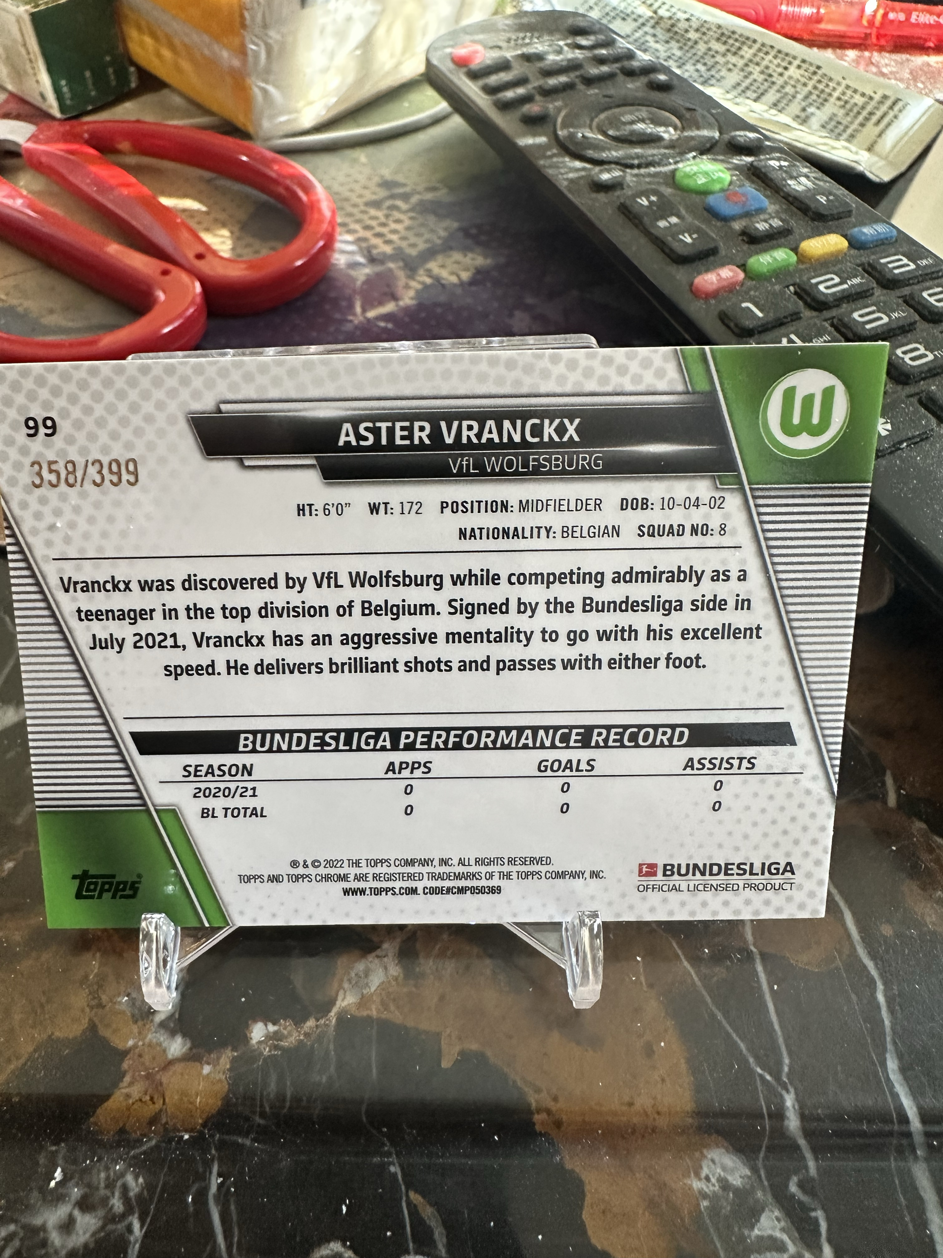 2022 Topps Chrome Aster Vranckx 德甲TC 阿斯特 弗兰克斯399编 粉波纹折 折射 卡品如图 收藏必备 极具收藏价值 亚马尔 沃尔夫斯堡 德国🇩🇪