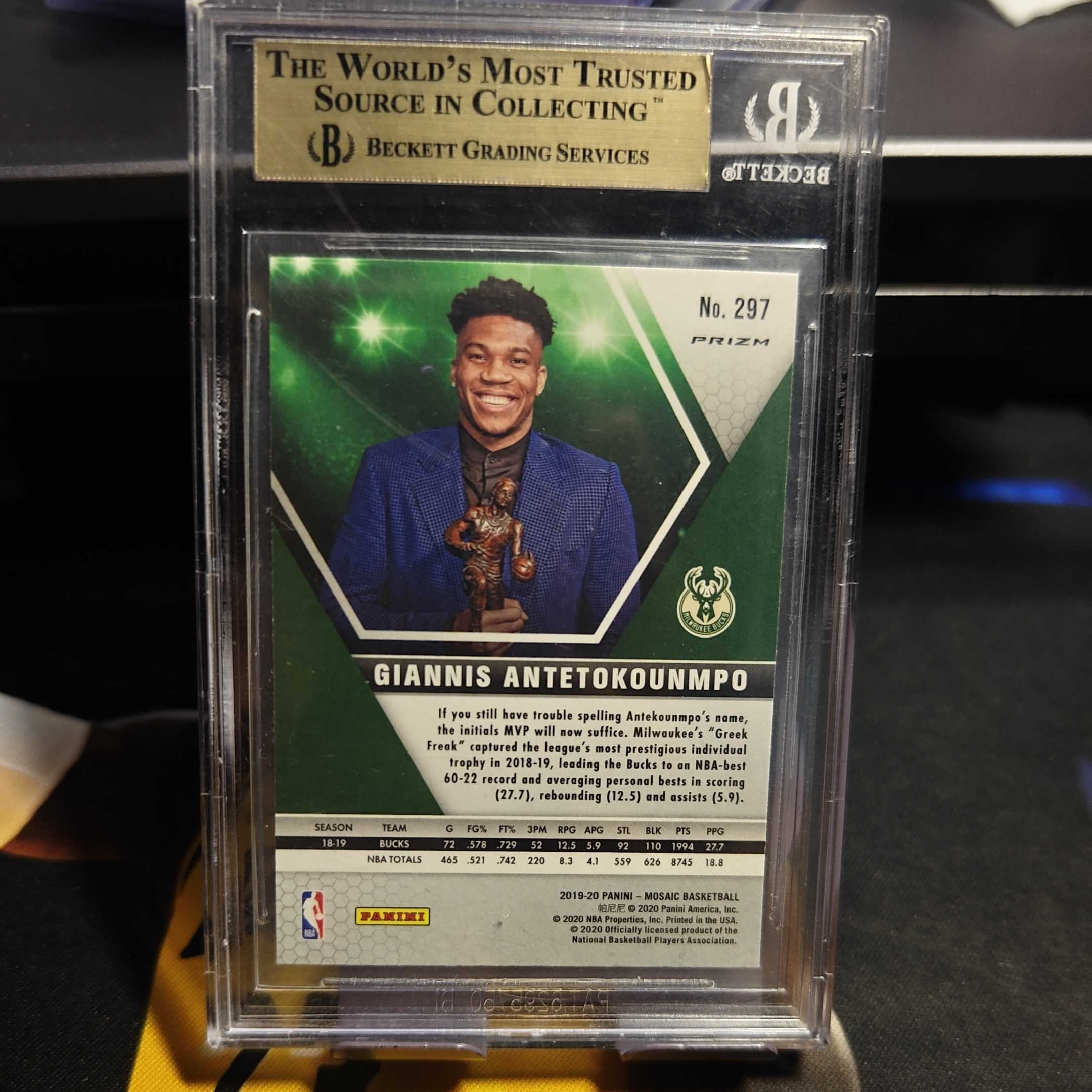 2019-20 Panini Mosaic Giannis 马赛克 雄鹿 字母哥 扬尼斯阿德托昆博 樱花折 粉马赛克折 MVP 捧杯特卡 BGS9.5分评级 满分 收藏必备