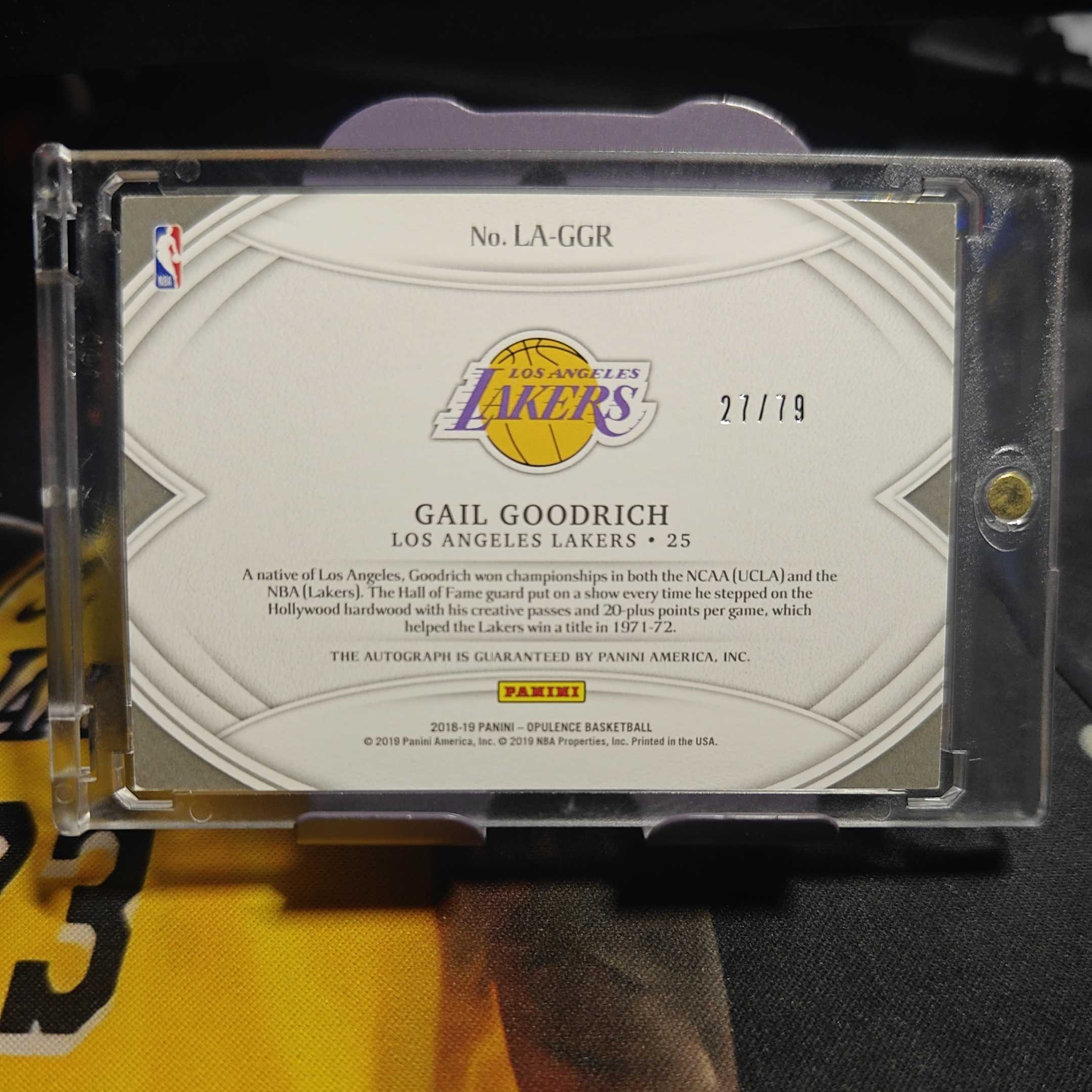 2018-19 Panini Opulence Gail Goodrich 金书 湖人 古德里奇 湖人名宿 名人堂 高端系列 27/79编 墨迹完好 收藏必备 卡品看图