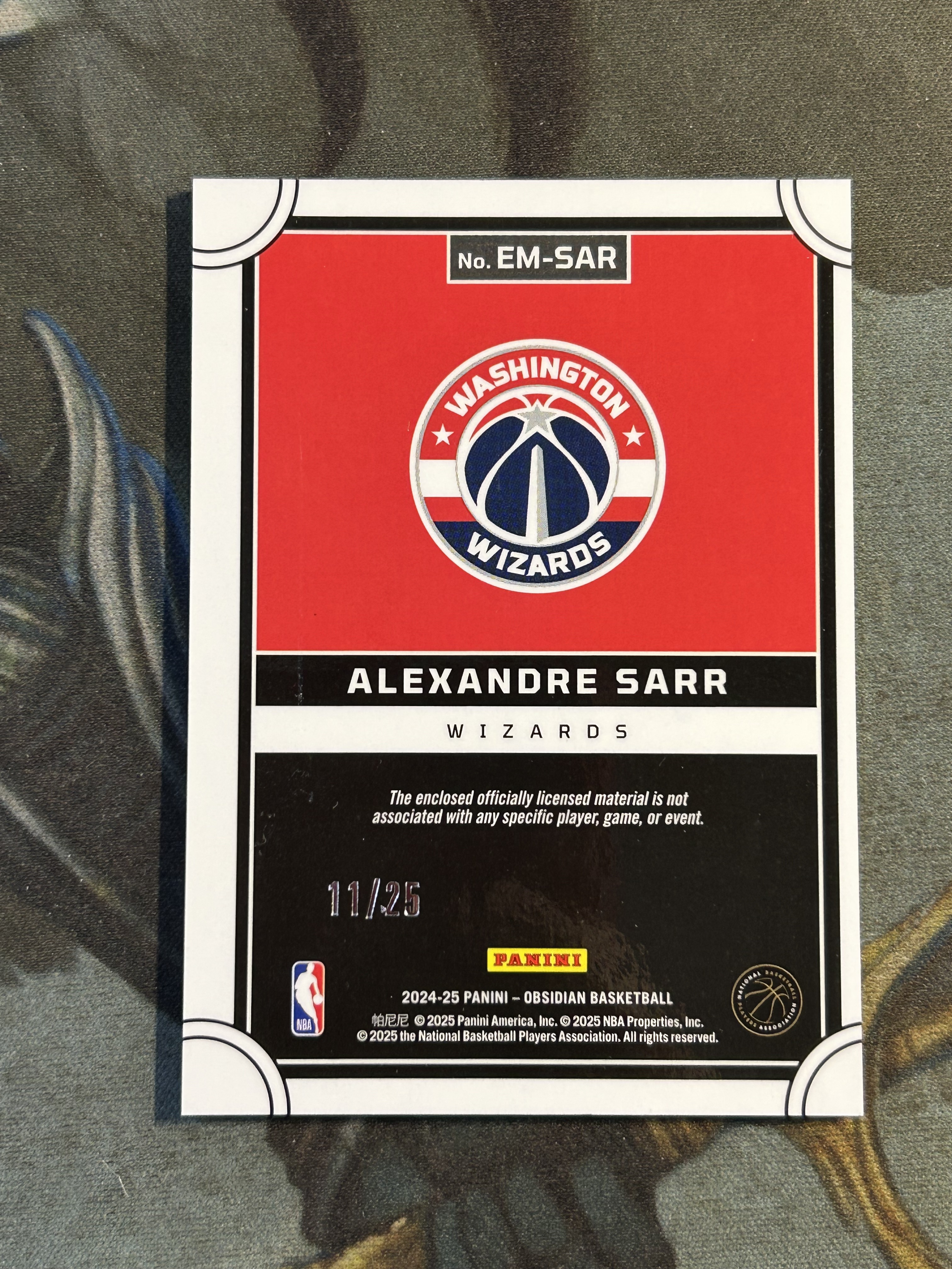 2024-25 OBSIDIAN 黑曜石 RC 新秀 ECLIPSE PATCH球衣实物 折射 限量/25编 ALEXANDRE SARR 萨尔 奇才 (品见大图,小瑕)《苏州卡通》Z【WANG】