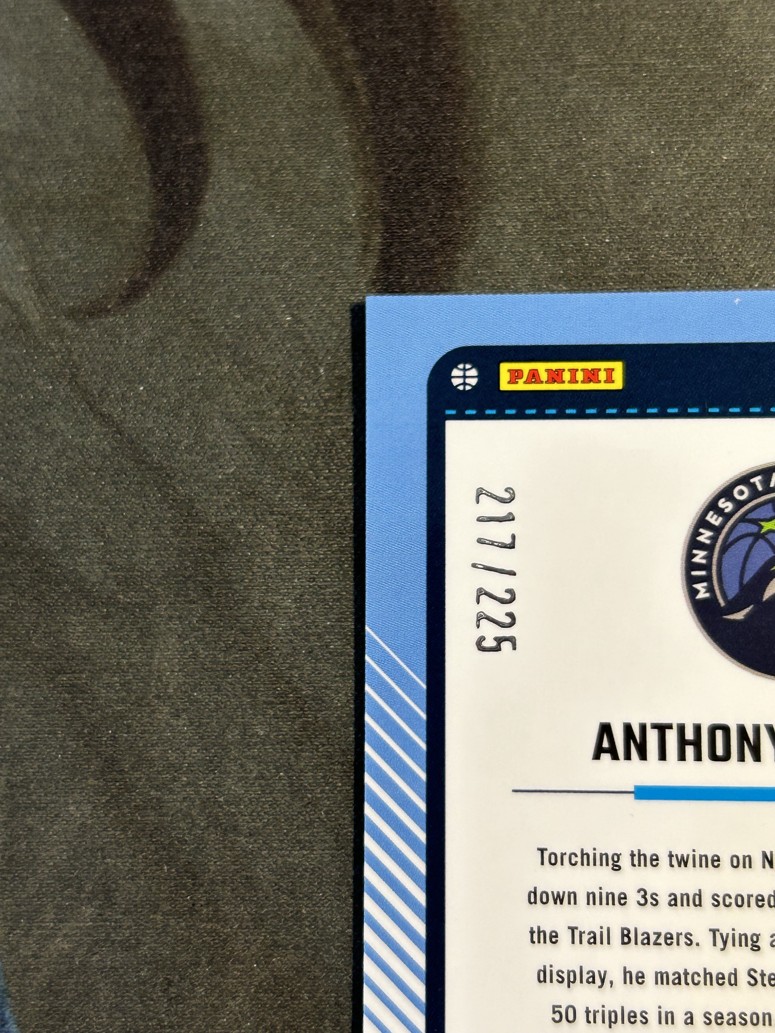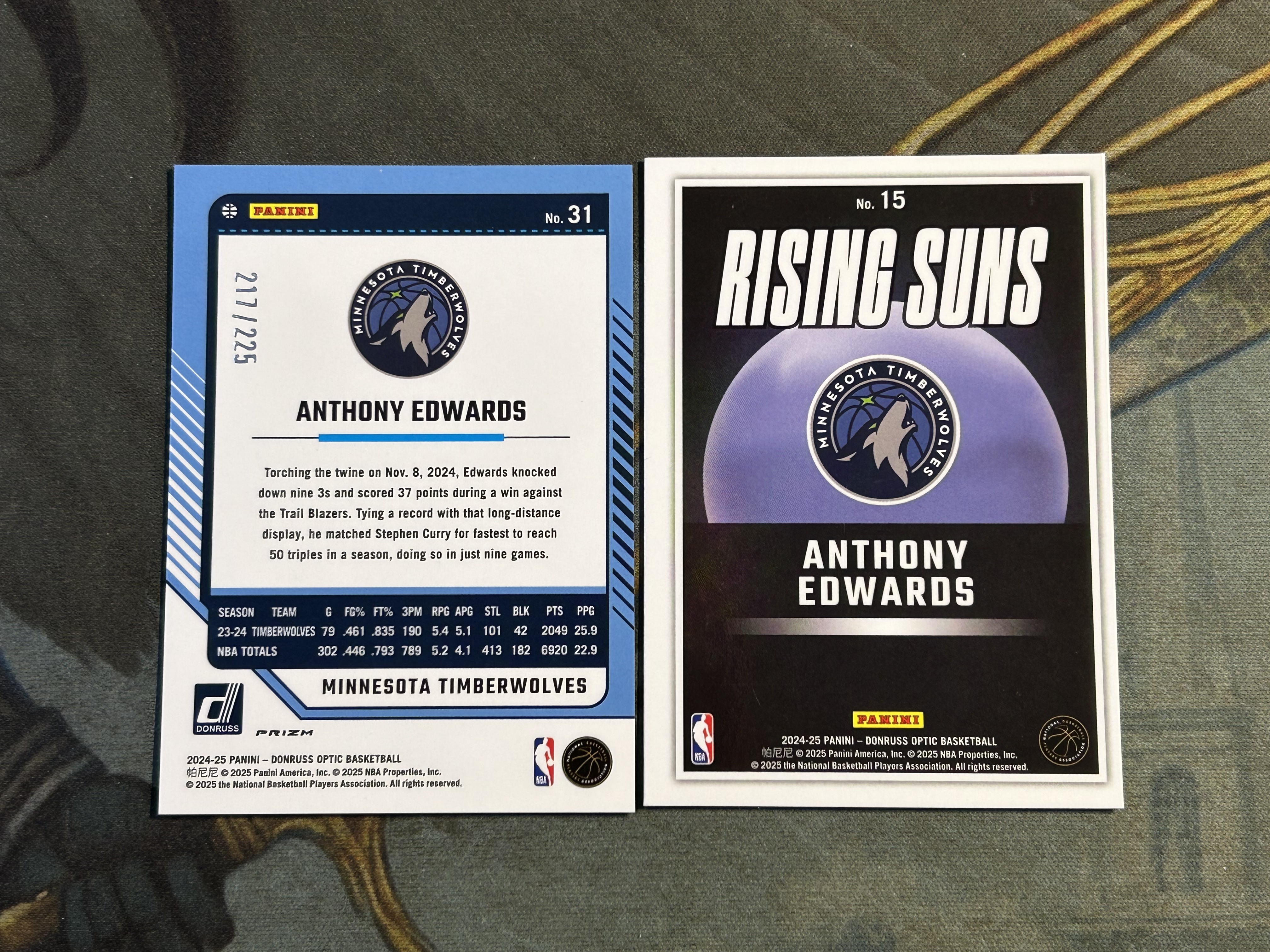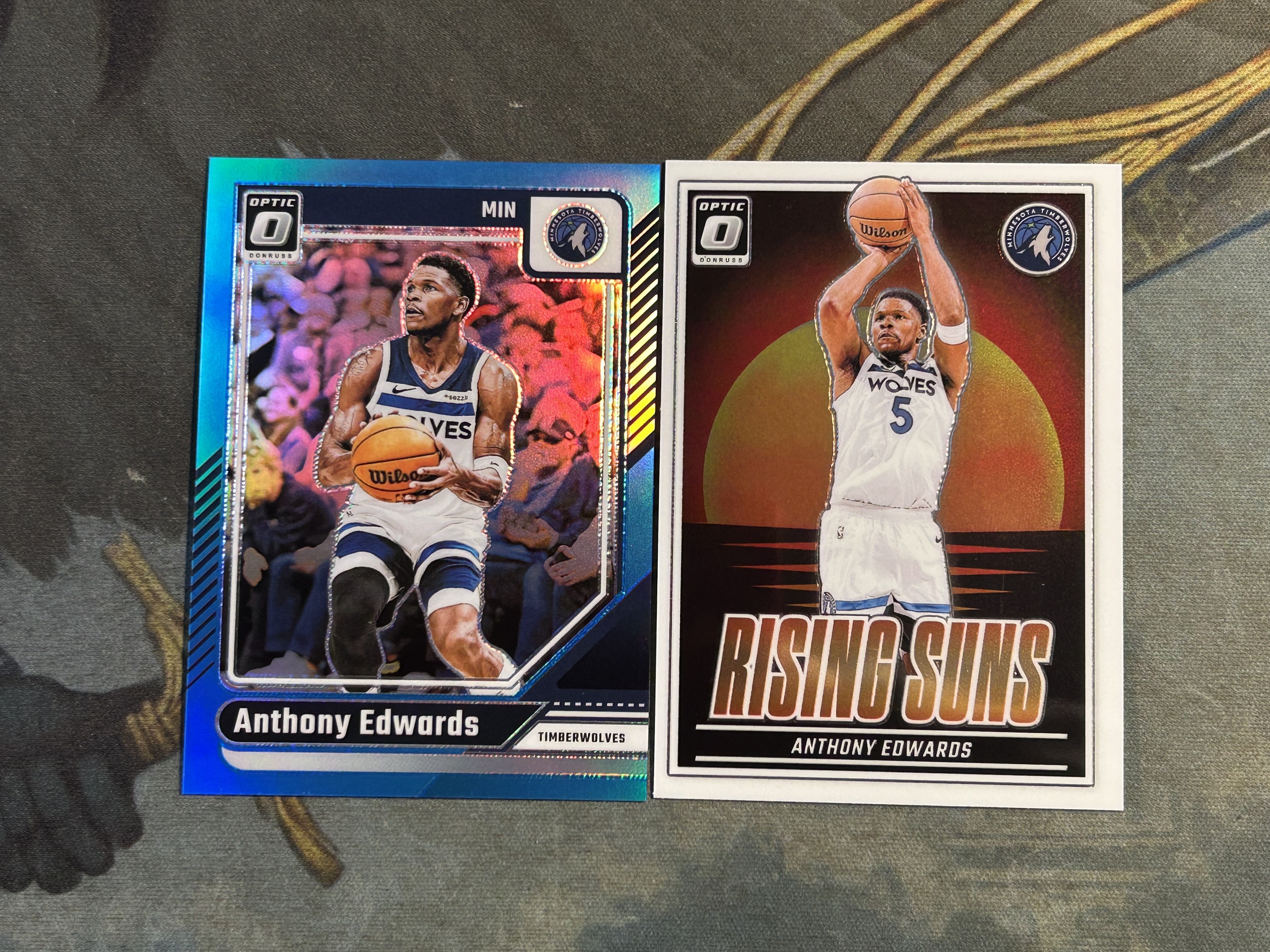 2024-25 OPTIC 蓝折 折射 限量/225编+特卡 2张一起 ANTHONY EDWARDS 安东尼·爱德华兹 森林狼 (打包不保品,小瑕)《苏州卡通》Z【WANG】