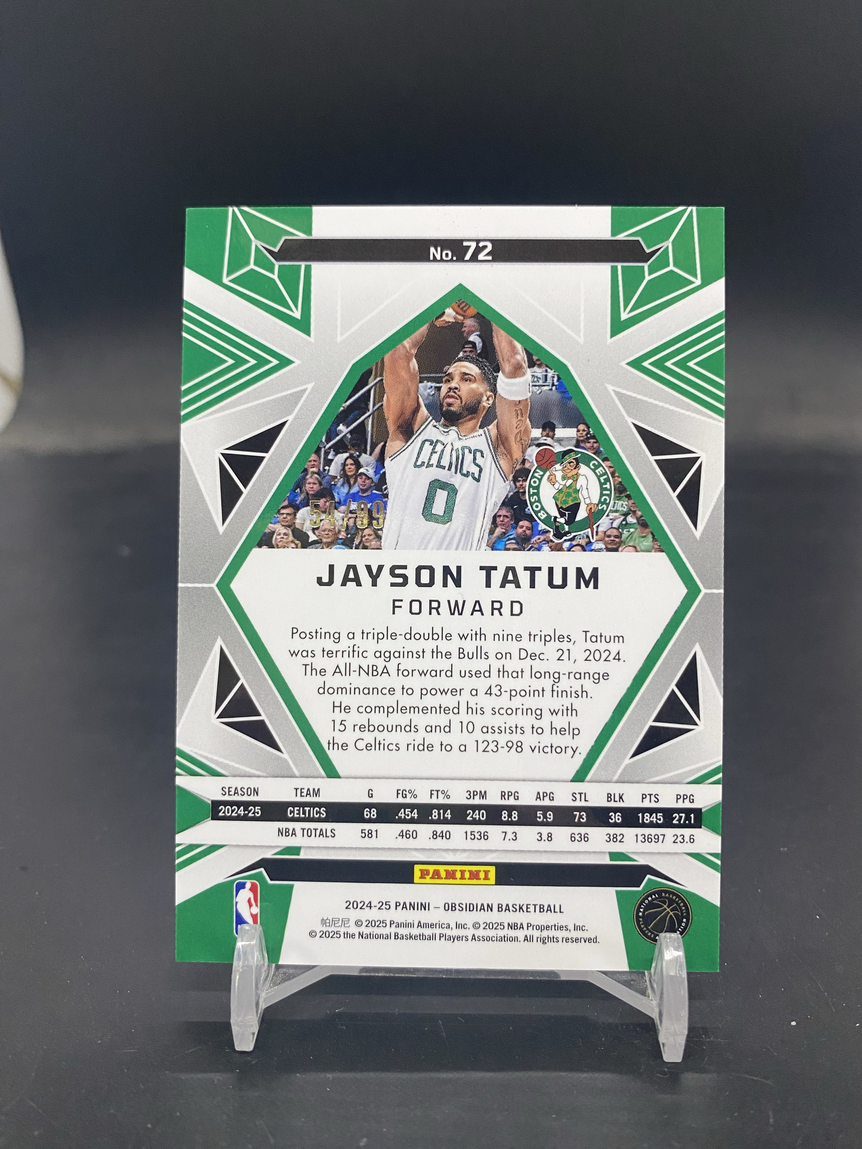 2024-25 Panini Obsidian Jayson Tatum 黑曜石 凯尔特人 杰森 塔图姆 獭兔 54/99编 铜折 折射 轻印如图AS-09「80」