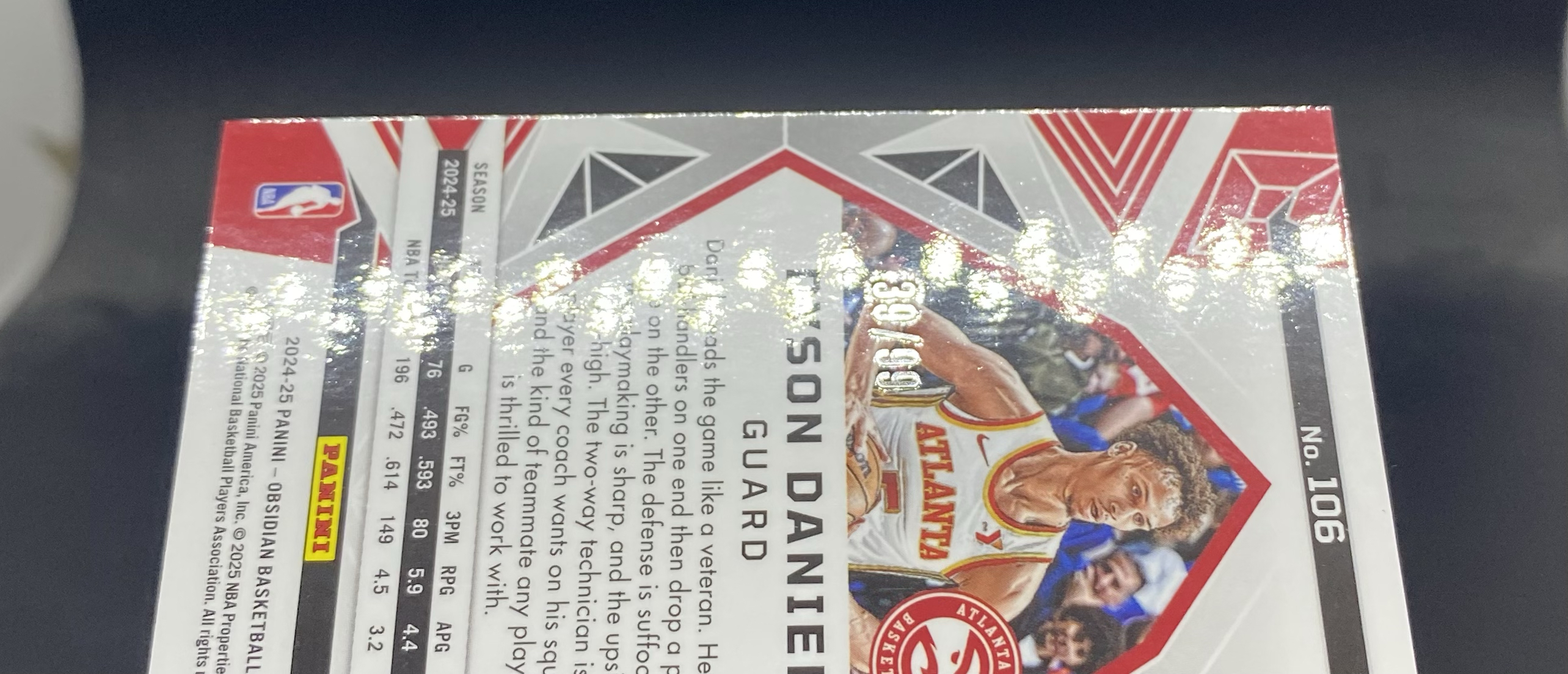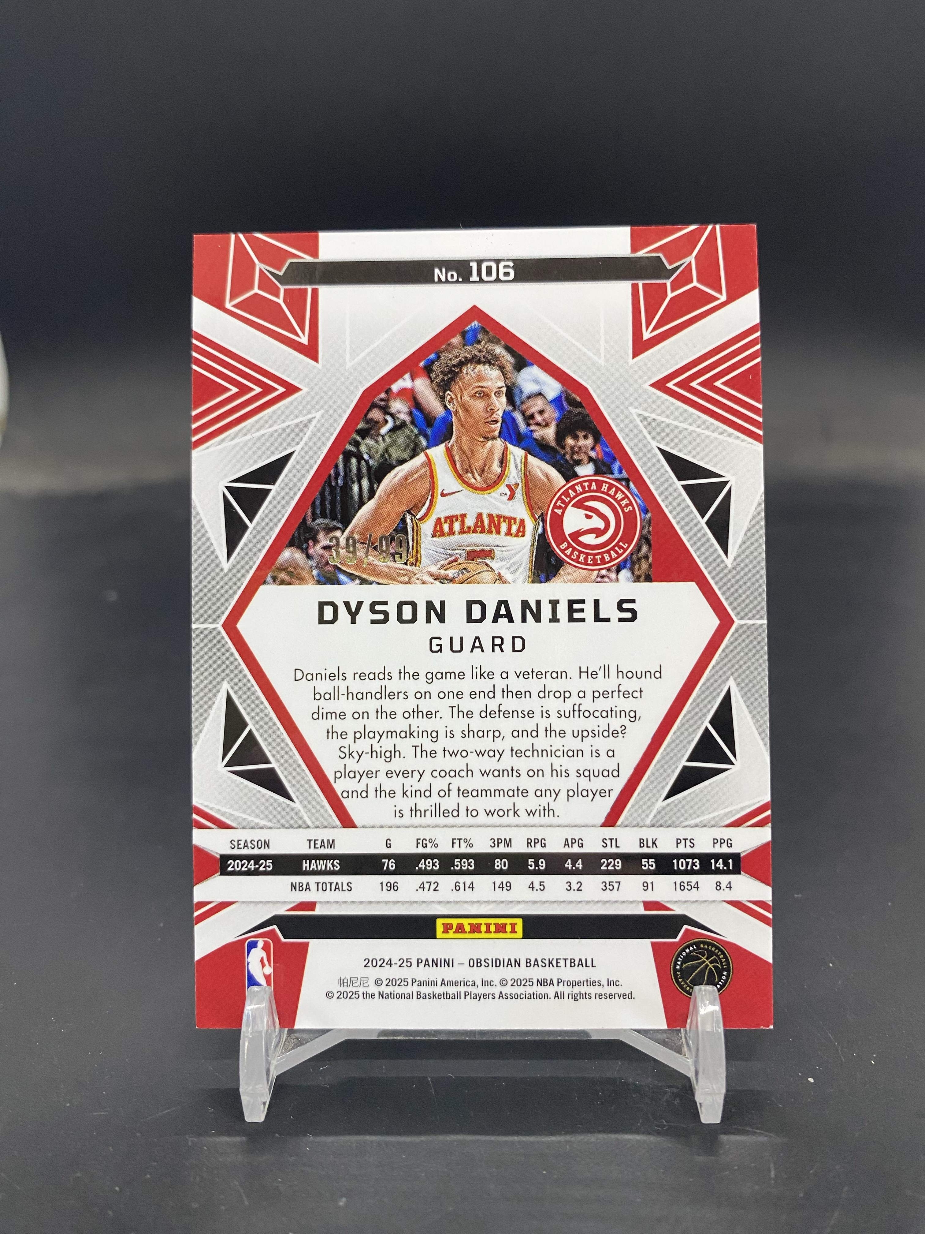 2024-25 Panini Obsidian Dyson Daniels 黑曜石 老鹰 戴森丹尼尔斯 39/99编 铜折 折射 印痕瑕疵如图AS-30「80」