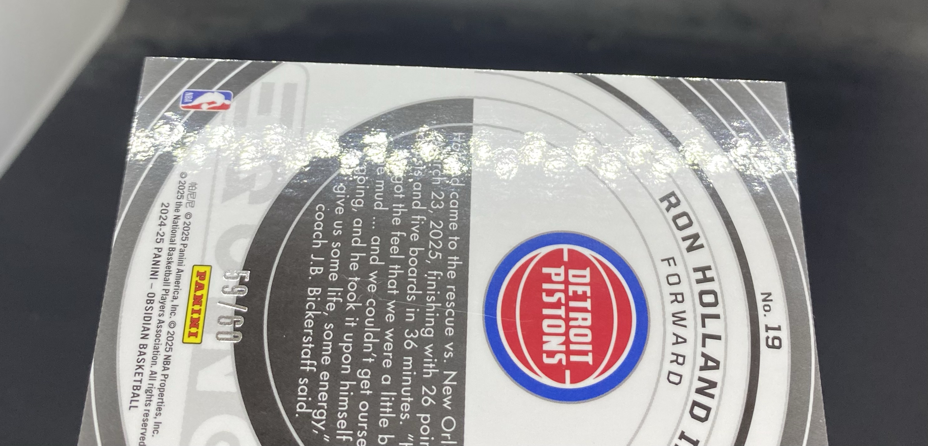 2024-25 Panini Obsidian Ron Holland RC 黑曜石 活塞 新秀 罗恩 霍兰德 59/60编 铜折 Equinox 特卡 折射 印痕如图AS-41「80」