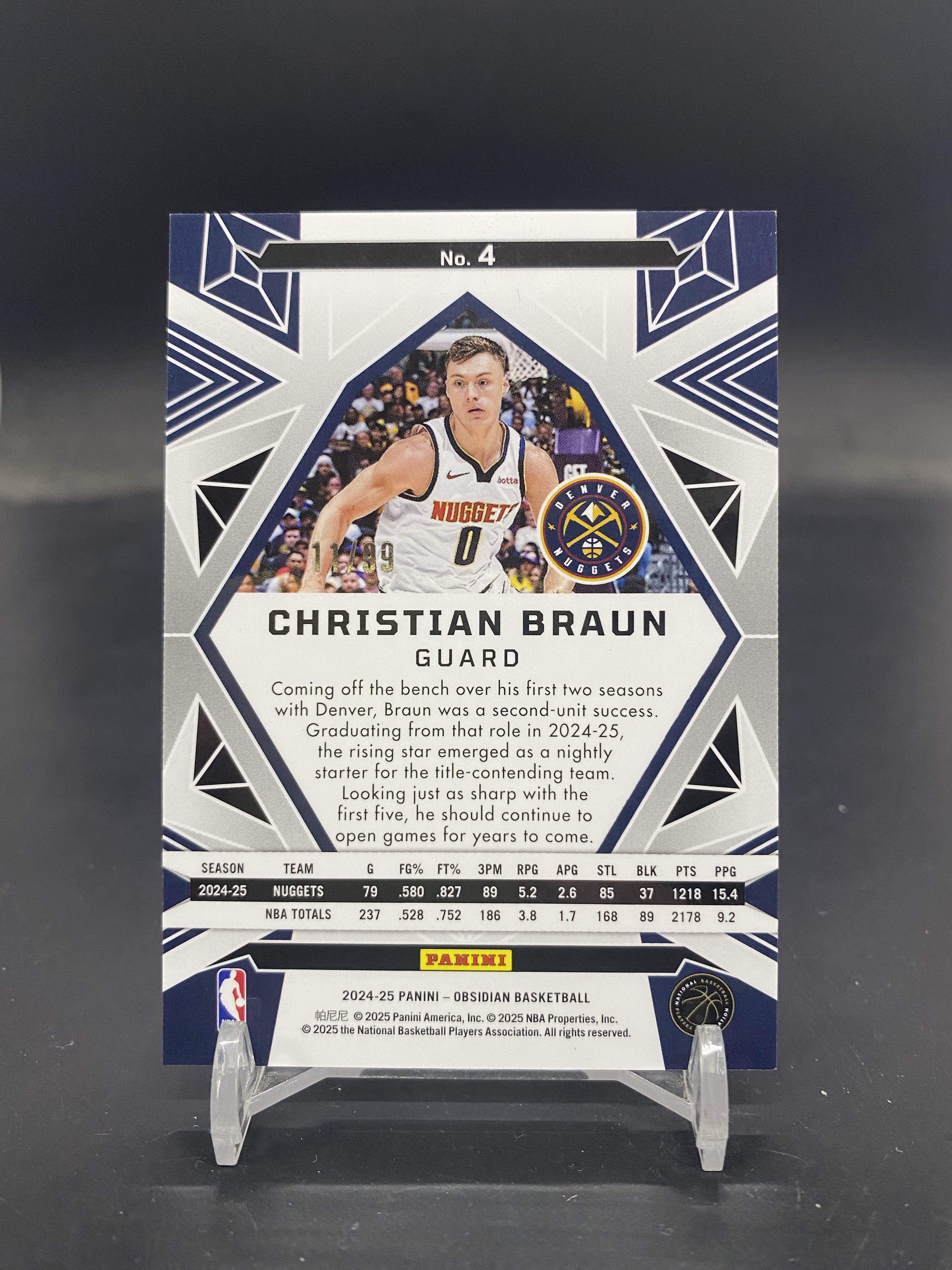 2024-25 Panini Obsidian Christian Braun 黑曜石 掘金 克里斯蒂安布劳恩 11/99编 铜折 折射 印痕如图AS-55「80」