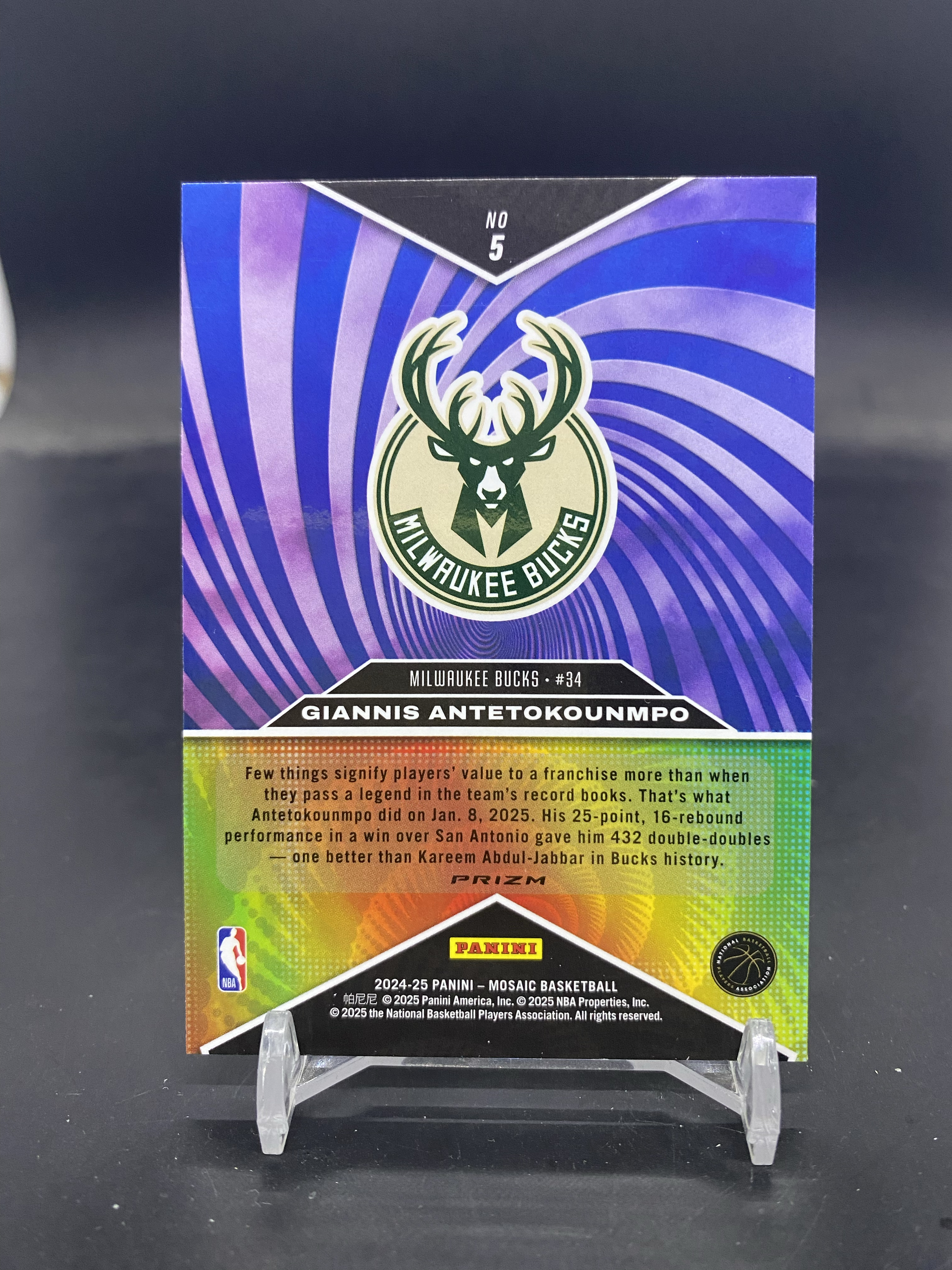 2024-25 Panini Mosaic Giannis Antetokounmpo 马赛克 雄鹿 阿德托昆博 字母哥 马赛克折 Storm Chasers 暴风追逐者特卡 瑕疵AS-95「80」