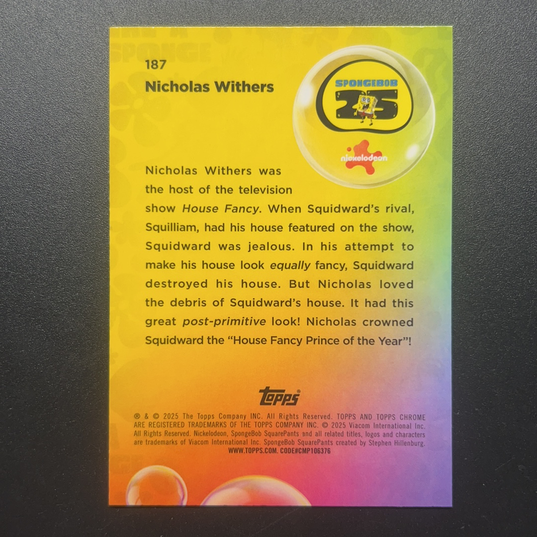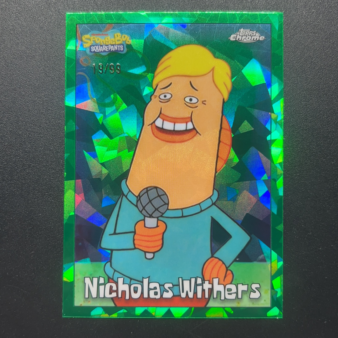 2025 Topps Chrome Nicholas withers 蓝宝石 海绵宝宝25周年 SpongeBob 尼古拉斯 威瑟斯 19/99编 绿碎冰折 收藏凑套 专收必备 卡品如图