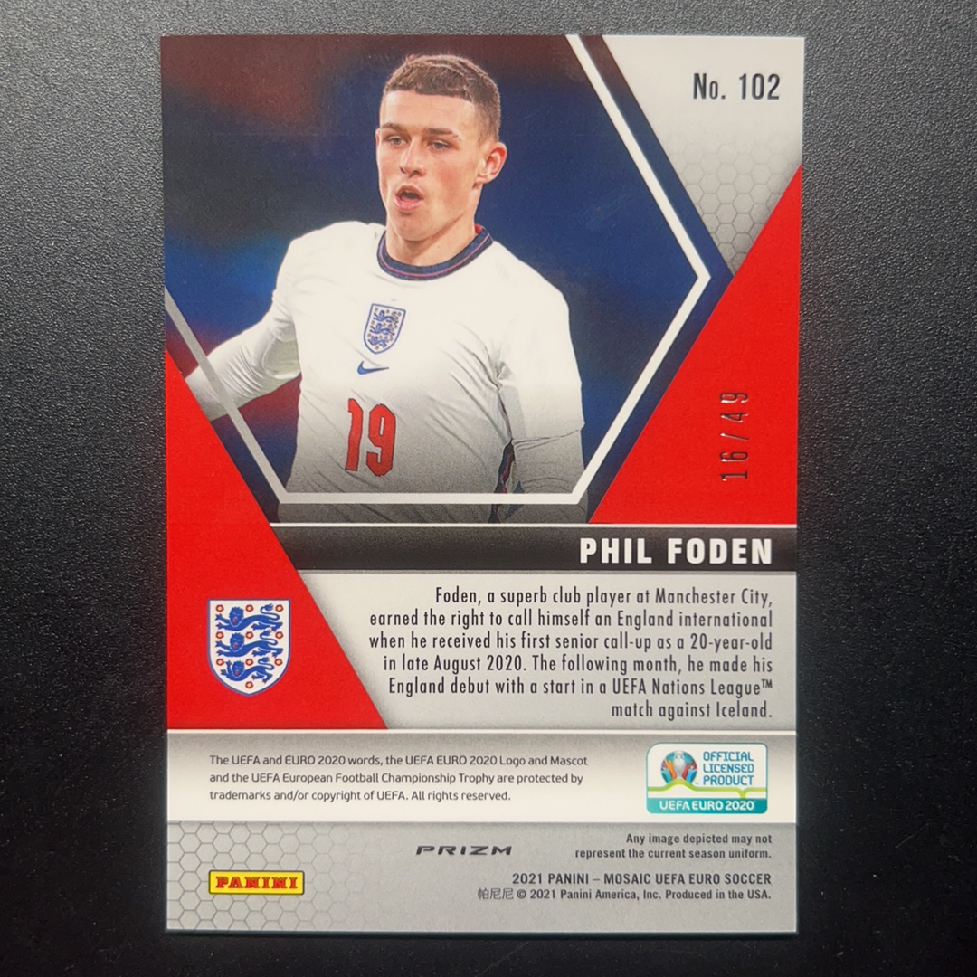 2021 Panini Mosaic Euro Phil Foden 20-21 mosaic 马赛克 欧洲杯 元年 英格兰 新秀 福登 曼城 太子 16/49编 粉折 收藏必备