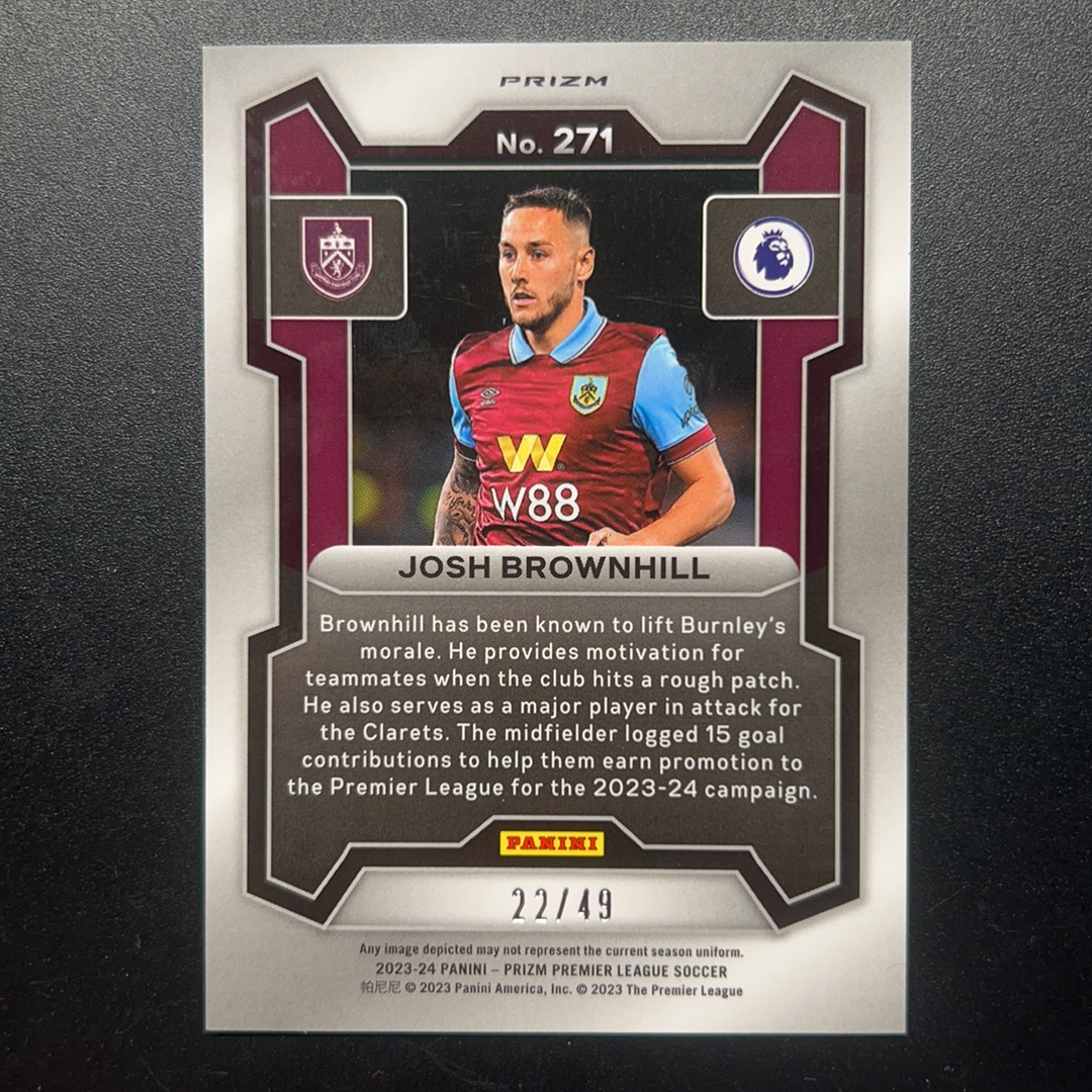 2023-24 Panini Prizm Josh Brownhill 布朗希尔 伯恩利 英超 22/49编 红泡泡 折射 pz 实卡精美 收藏必备 卡品如图