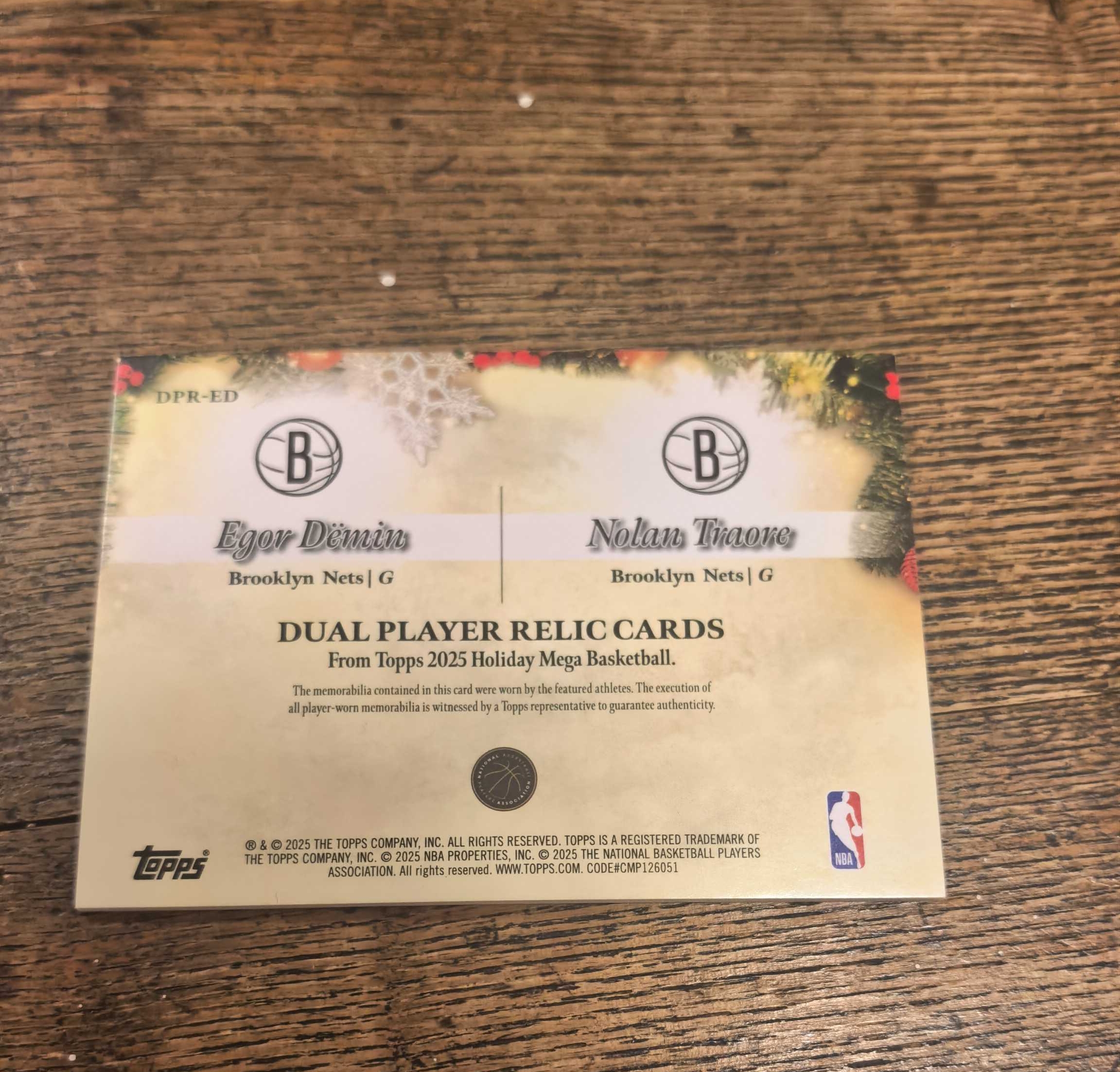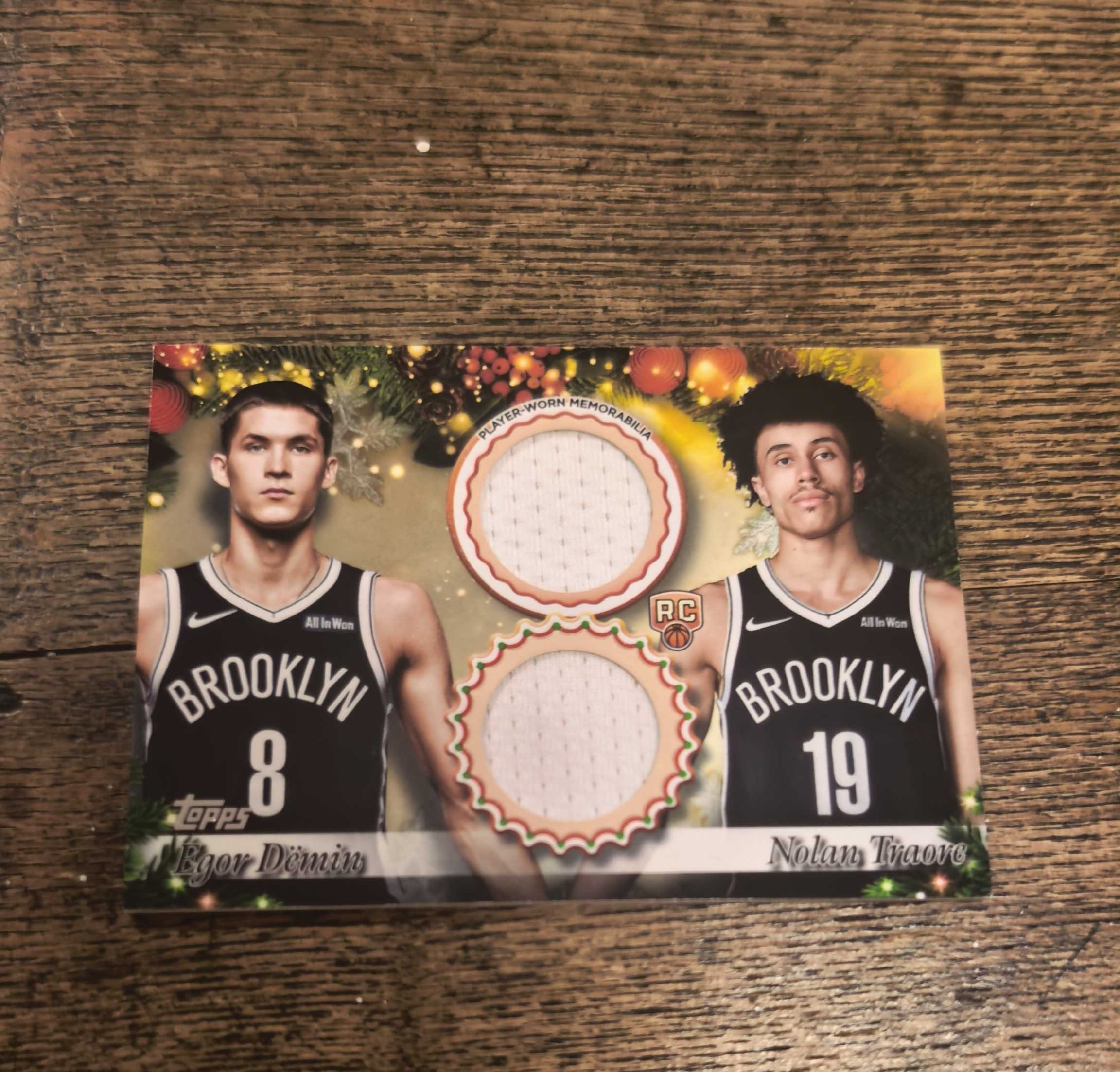 2025-26 Topps Happy Holidays Egor Demin RC 篮网 新秀 帅哥 叶戈尔 杰明 Traore 双人球衣切割 物料 比赛亲穿