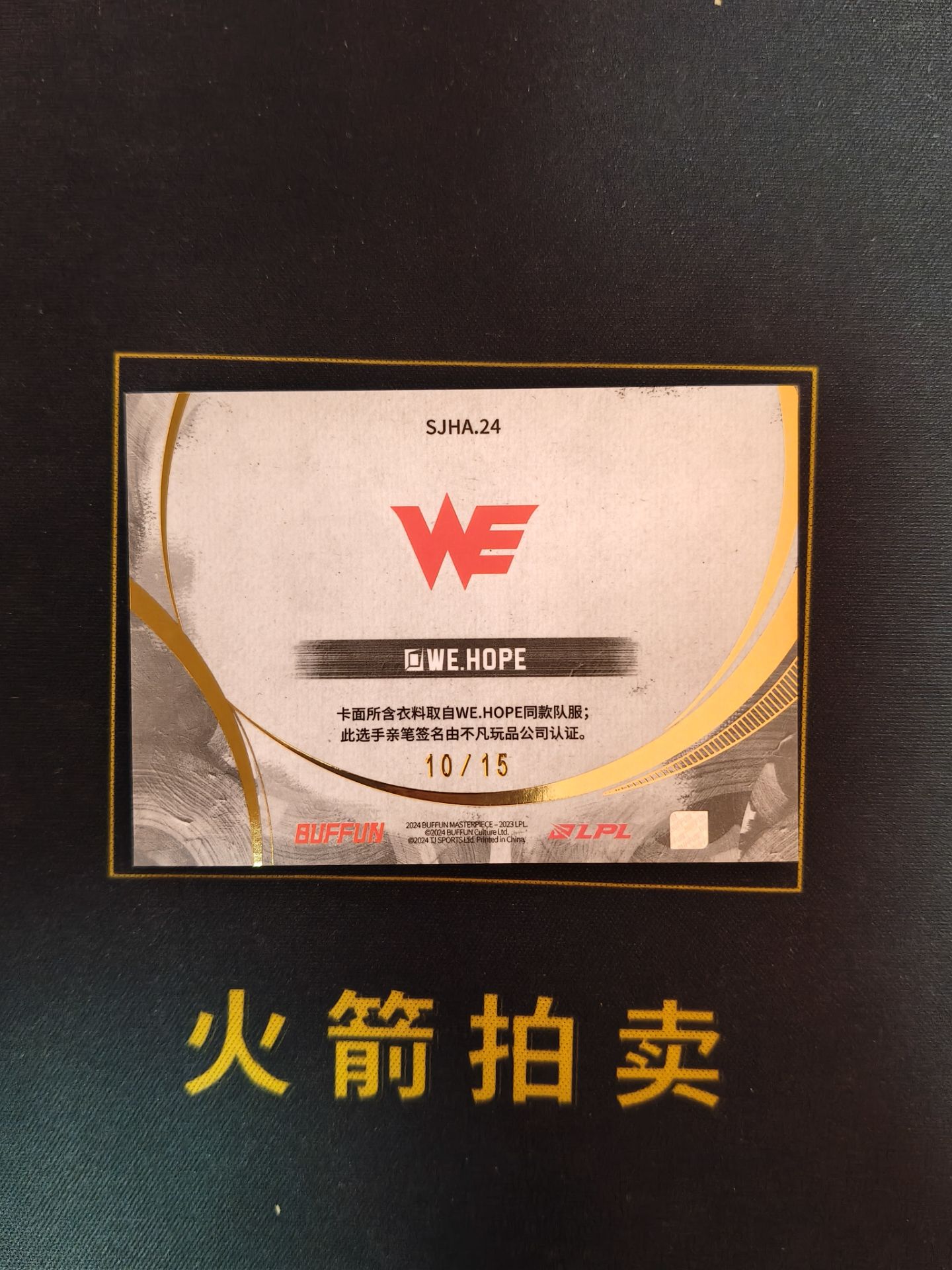 【火箭拍卖 截标预付82%】2024 buffun LPL masterpiece we hope 不凡玩品 英雄联盟 杰作 王杰 签字 卡签 队服 物料 patch 10/15编 低编 专收必备「A9SGR7」1201D03様兿