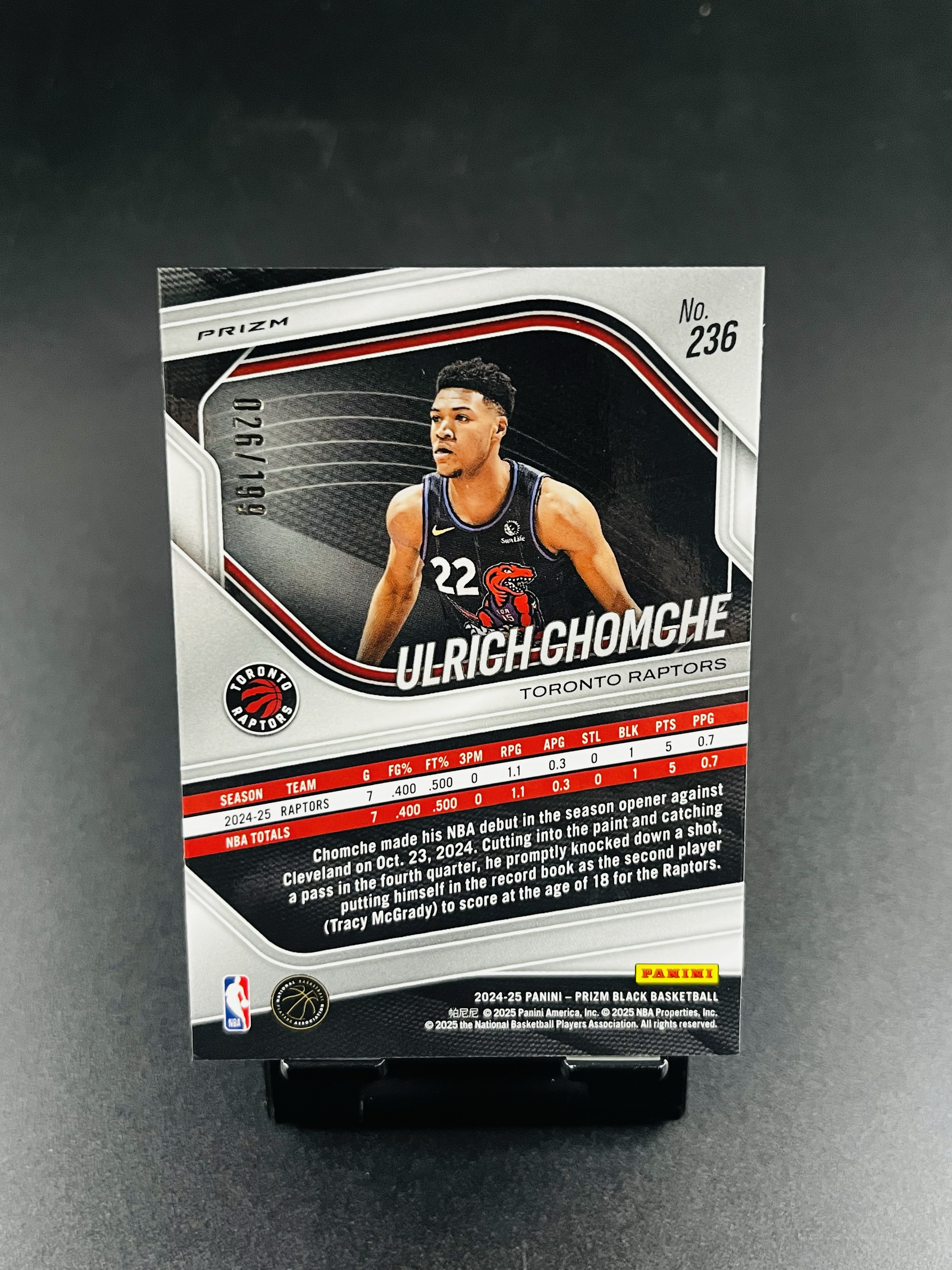 2024-25 Panini prizm black ULEICH CHOMCHE RC Pz末年 猛龙 新秀 乌尔里希 乔姆切 蓝折 199编【鸟叔拍卖】巴总
