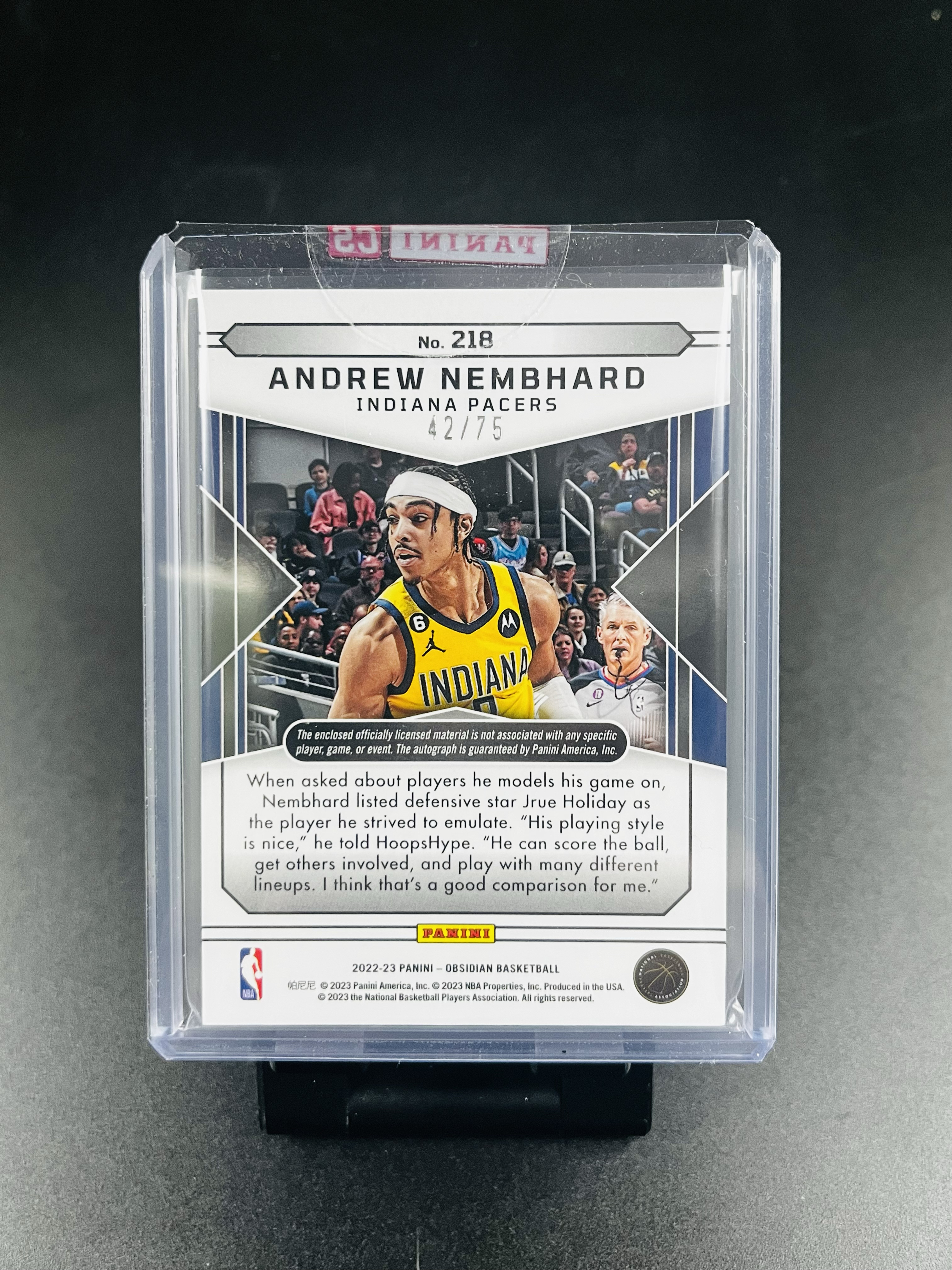 2022-23 Panini Obsidian Andrew Nembhard RC 黑曜石 新秀RC 步行者 内姆布哈德 75编 球衣 签字 RJA 原封夹 【鸟叔拍卖】一卡