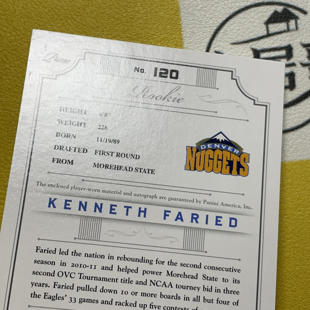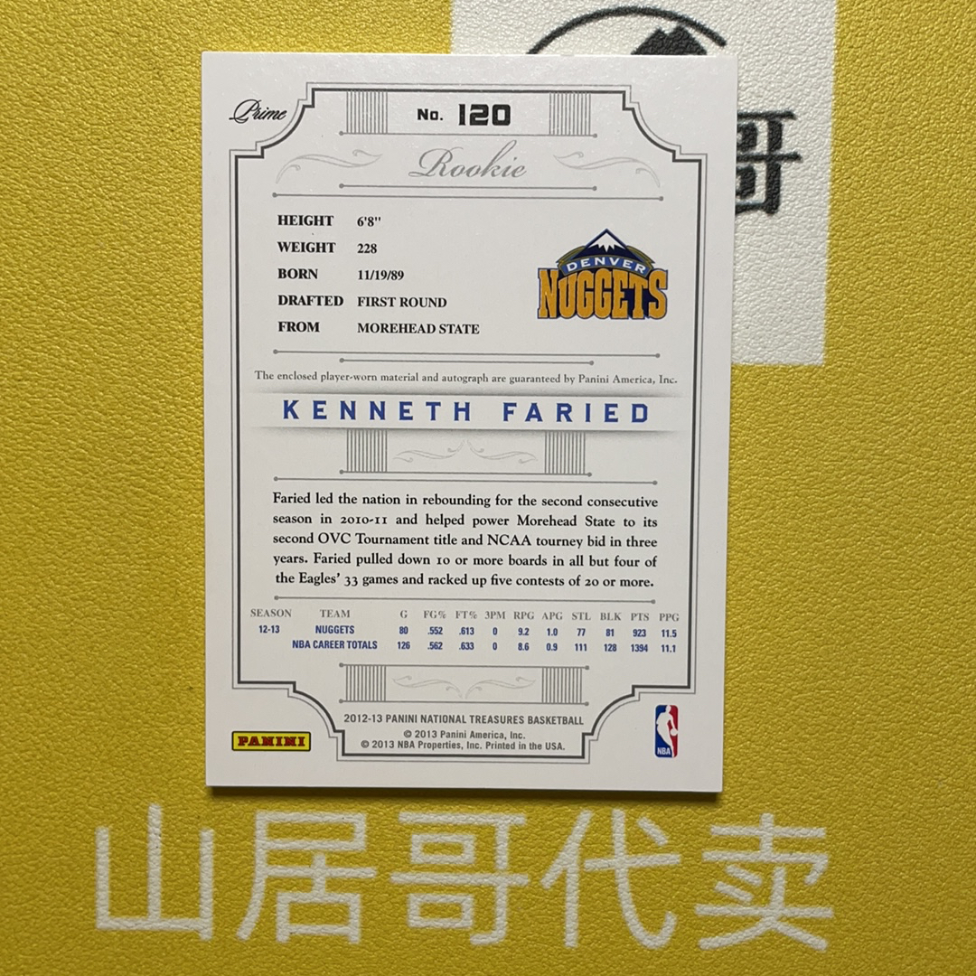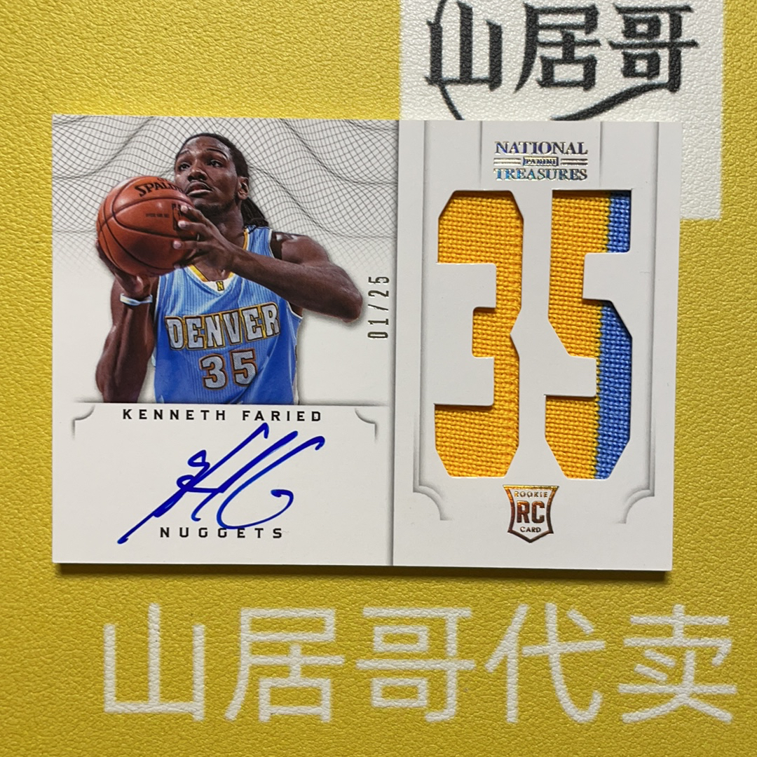 2012-13 Panini National Treasures Kenneth Faried RC 国宝 掘金 法里德 新秀 1/25编 首编 签字 亲穿双色物料 卡签 rpa 包砖 轻印如图 肉
