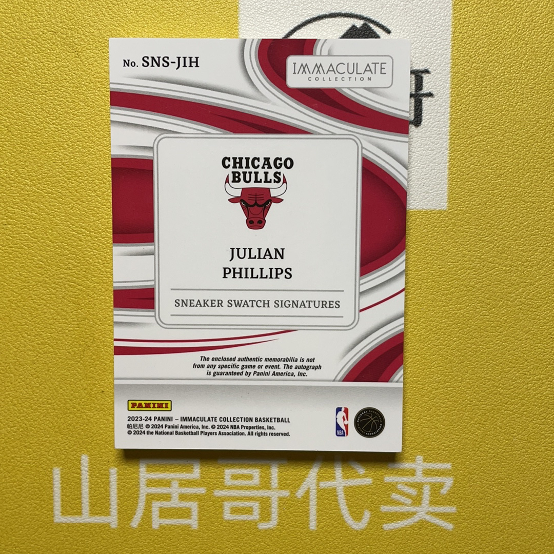 2023-24 Panini Immaculate Julian Phillips RC 爱咪咪 公牛 朱利安 菲利普斯 13/49编 新秀 签字 鞋签 球鞋物料 卡签 轻印如图 肉 【山居哥代卖】