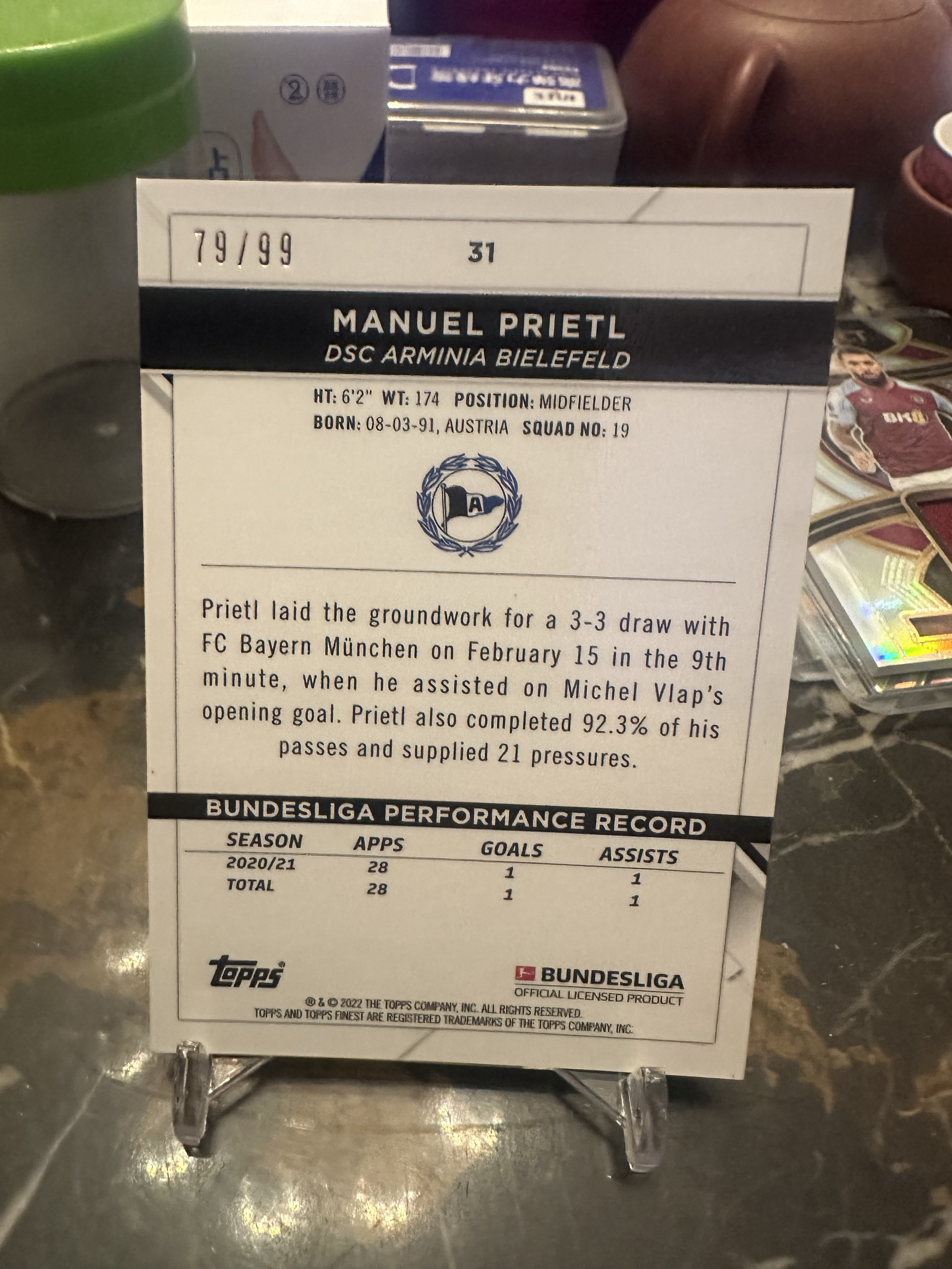 2022 Topps Finest Manuel Prietl 德甲 比勒菲尔德 普里特尔 奥地利🇦🇹 99编 绿波纹折 极具收藏价值 亚马尔 德国🇩🇪