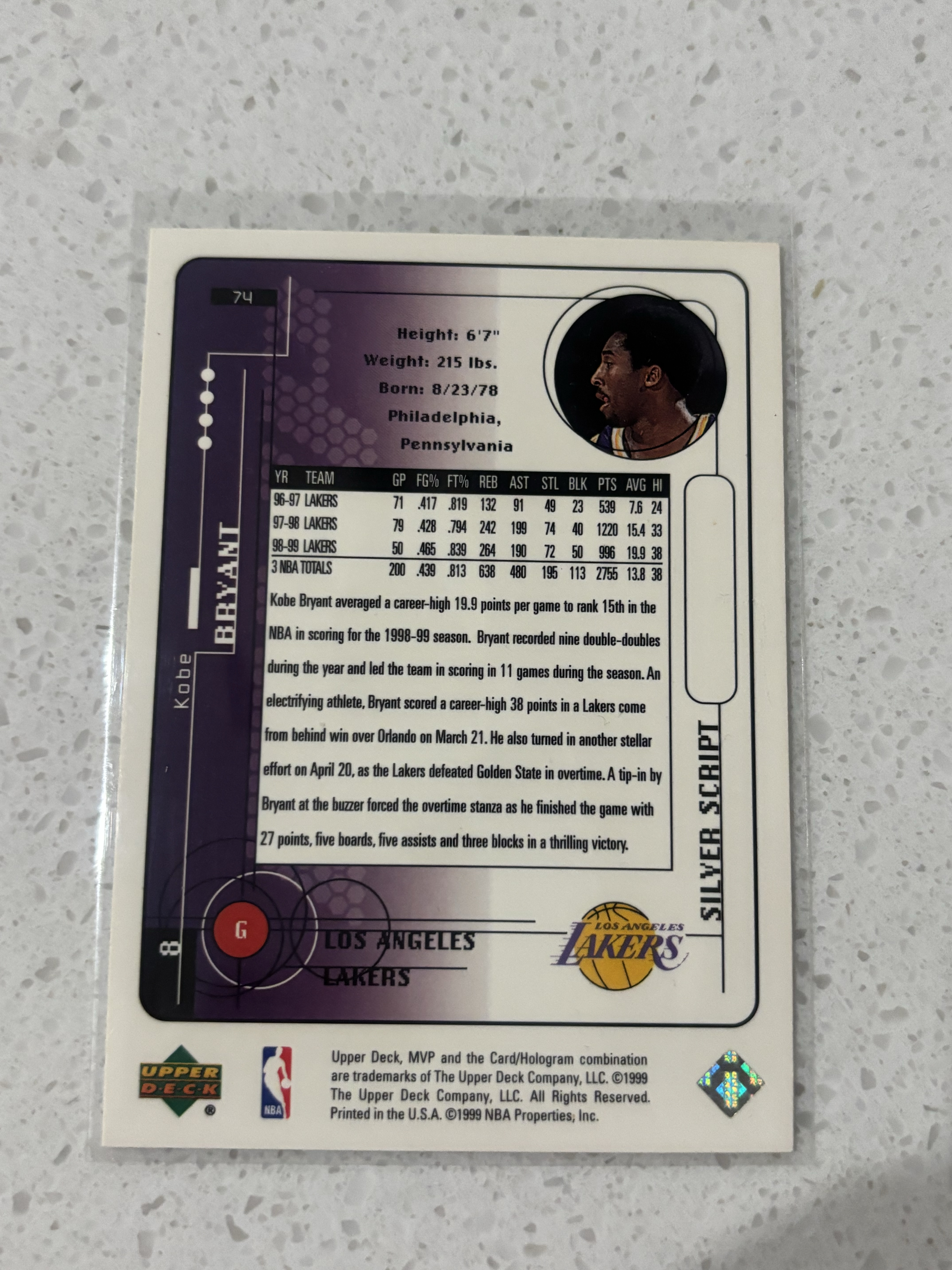 1999 ud mvp 科比 布莱恩特 湖人 紫金王朝 特卡 印签 大比例sp 收藏必备