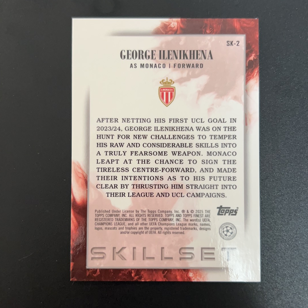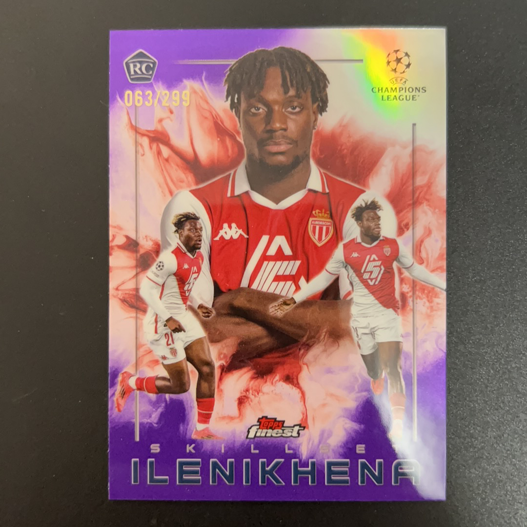 2025 Topps Finest ilenikhena RC 欧冠 finest 摩纳哥 伊莱尼贺纳 新秀rc 紫折 63/299编 卡品如图