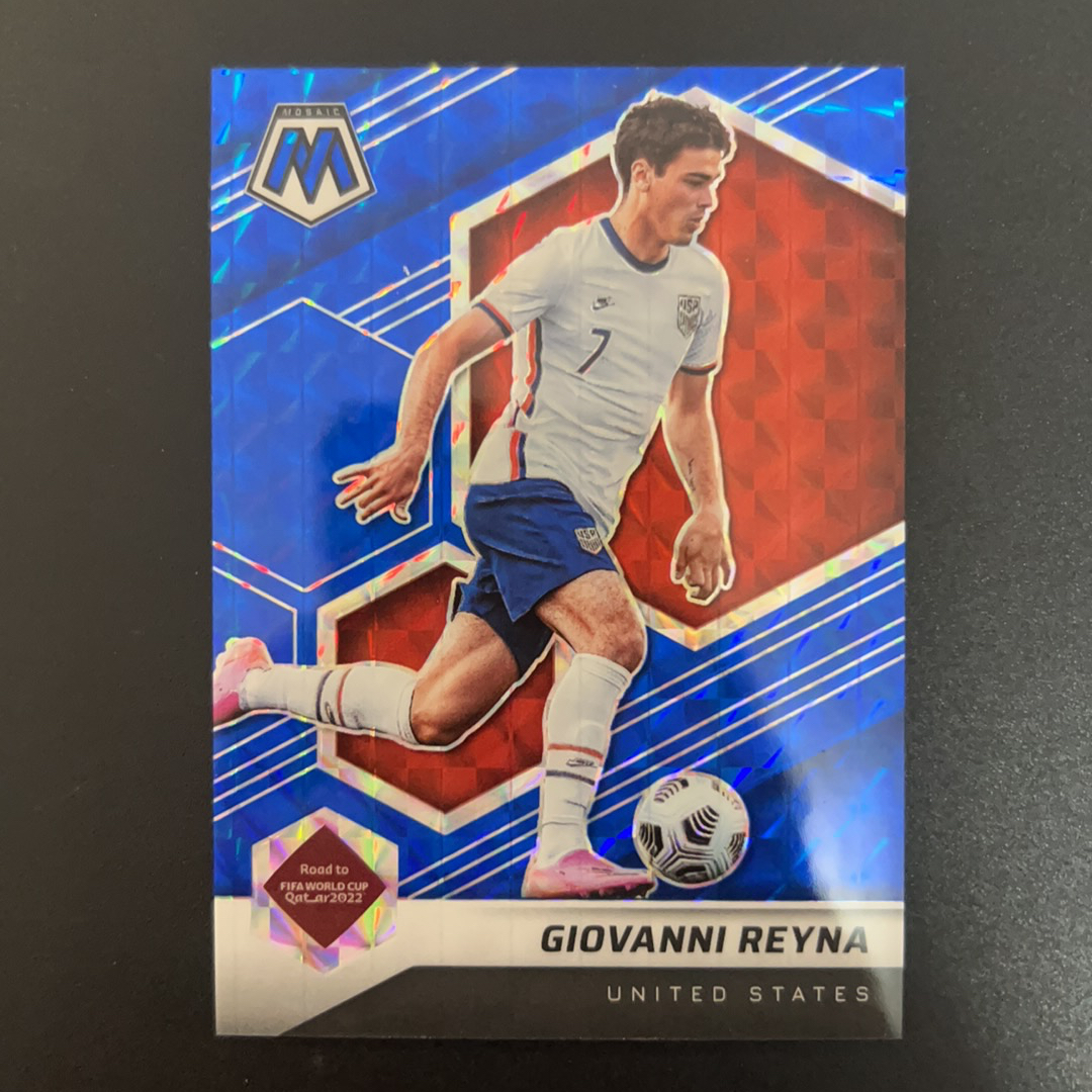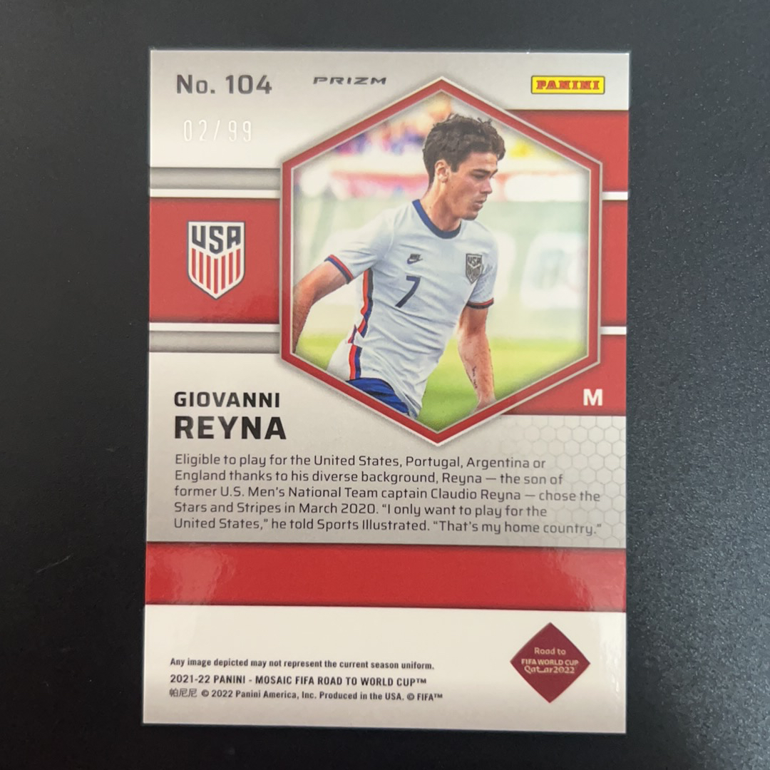 2021-22 Panini Mosaic giovanni reyna 美国 吉奥瓦尼·雷纳 NO.104 02/99编 蓝马赛克折 世界杯马赛克 卡品如图