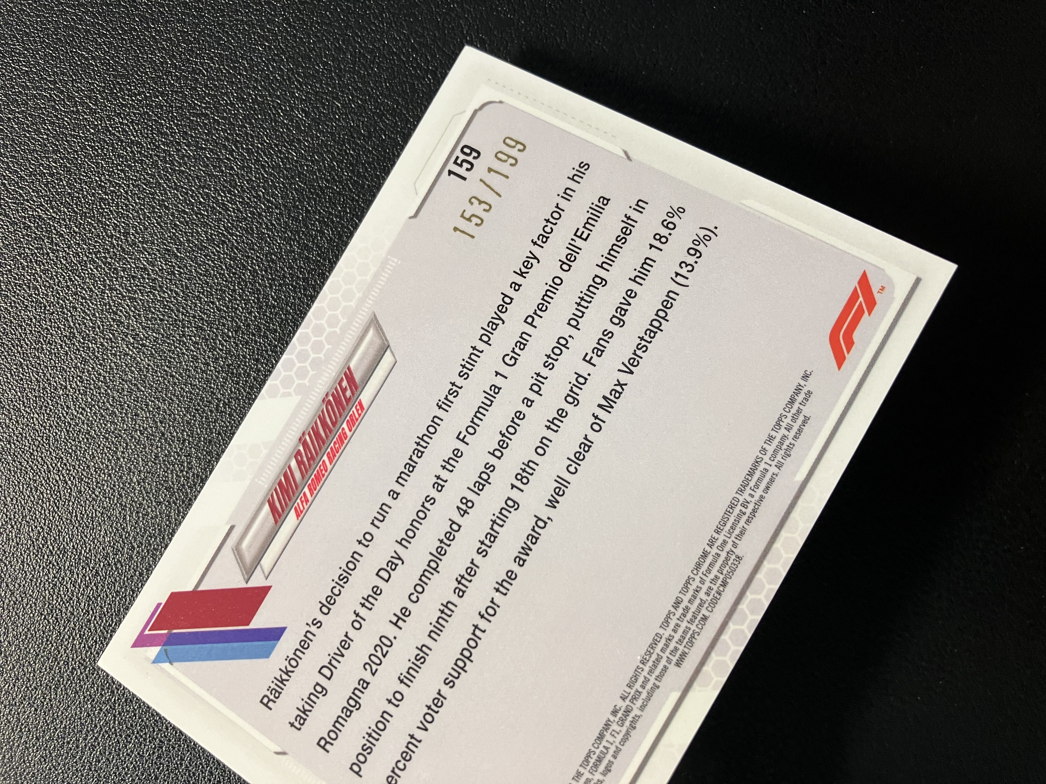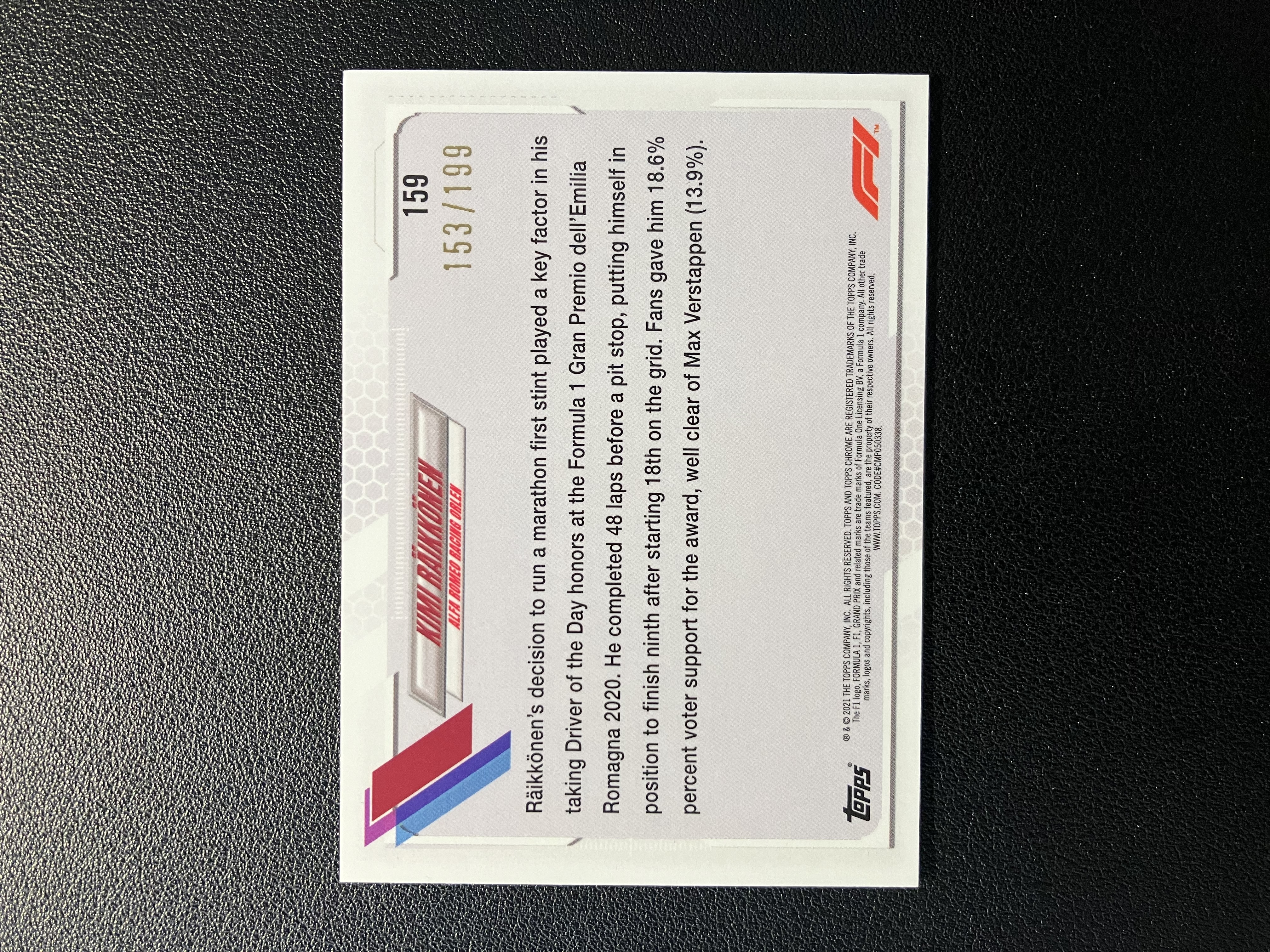 2021 Topps Chrome Kimi Räikkönen F1 TC蓝宝石 基米-莱科宁 153/199编 黄碎冰折 阿尔法罗密欧 传奇 芬兰 冰人 卡品如图 B227