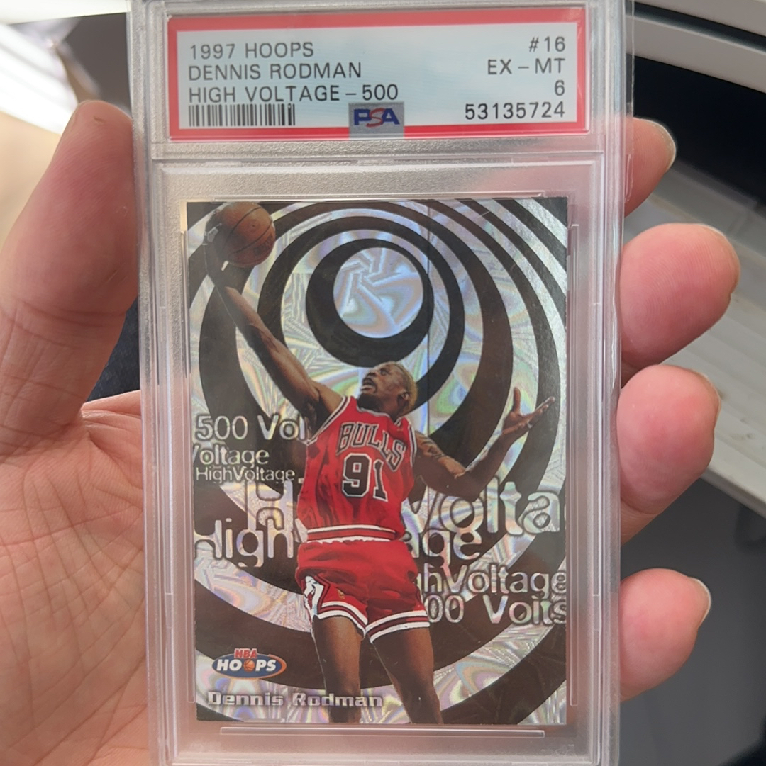 1997 SkyBox HOOPS HIGH VOLTAGE Dennis Rodman 大虫 丹尼斯 罗德曼 最经典 大比例老特 HIGH VOLTAGE 高压电 500编 PSA6