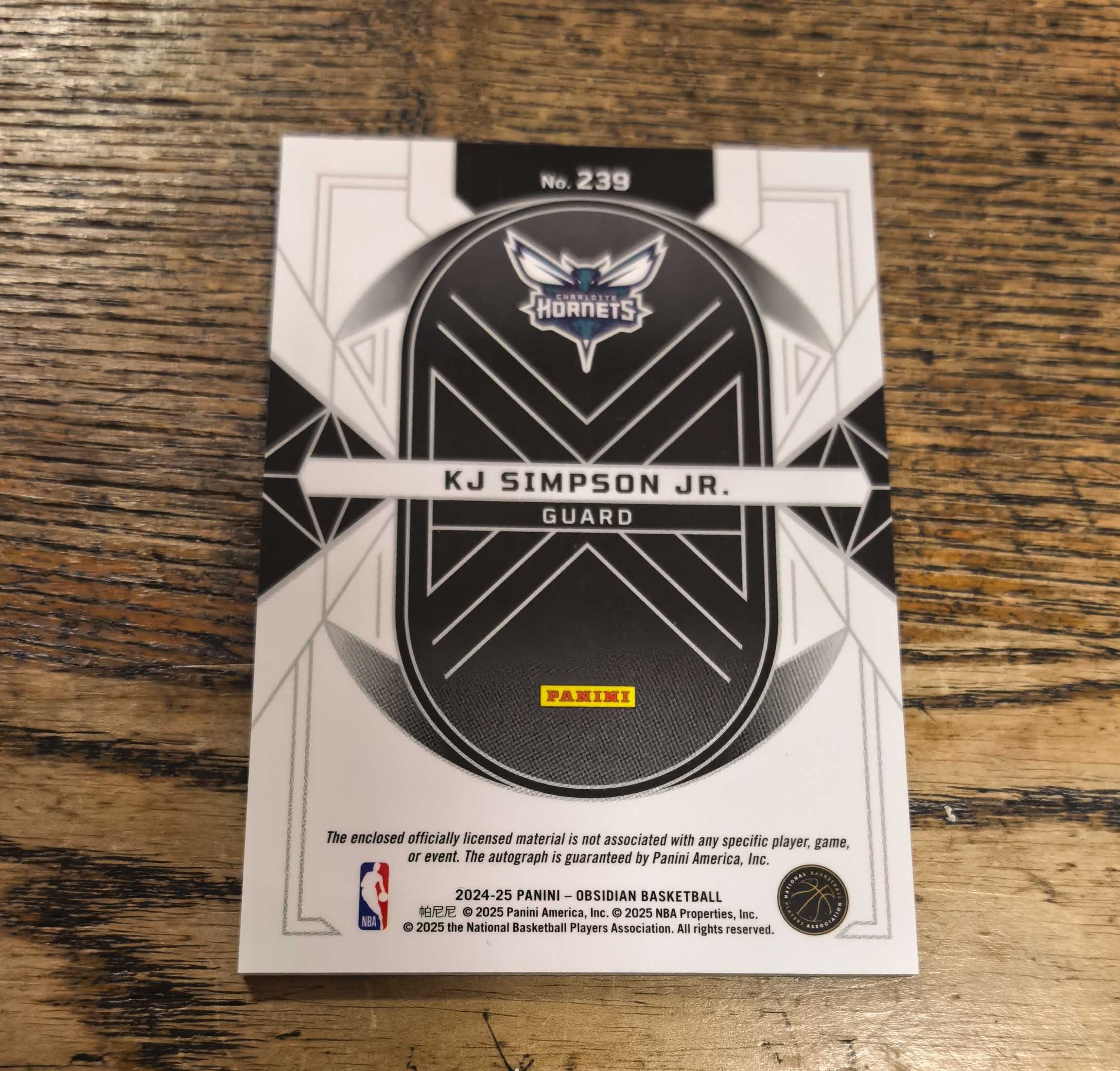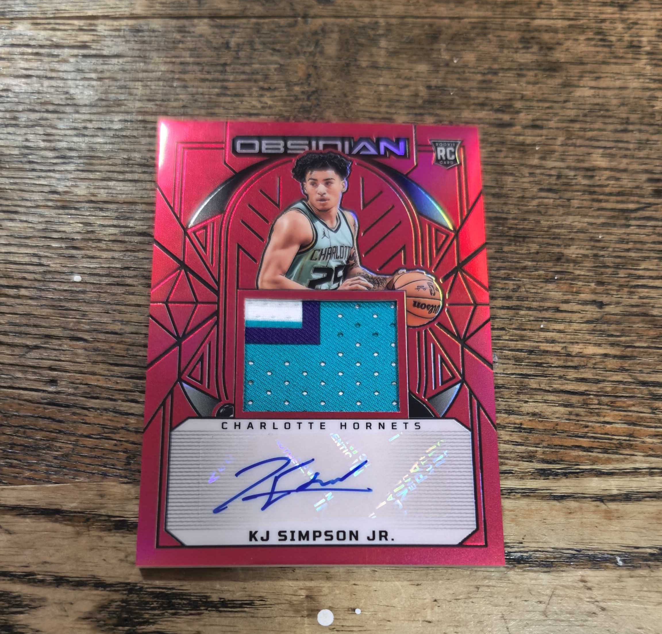 2024-25 Panini Obsidian KJ Simpson RC 黑曜石 黄蜂 新秀 小 KJ 辛普森 签字 球衣切割 物料 RPA 红折 折射 银折