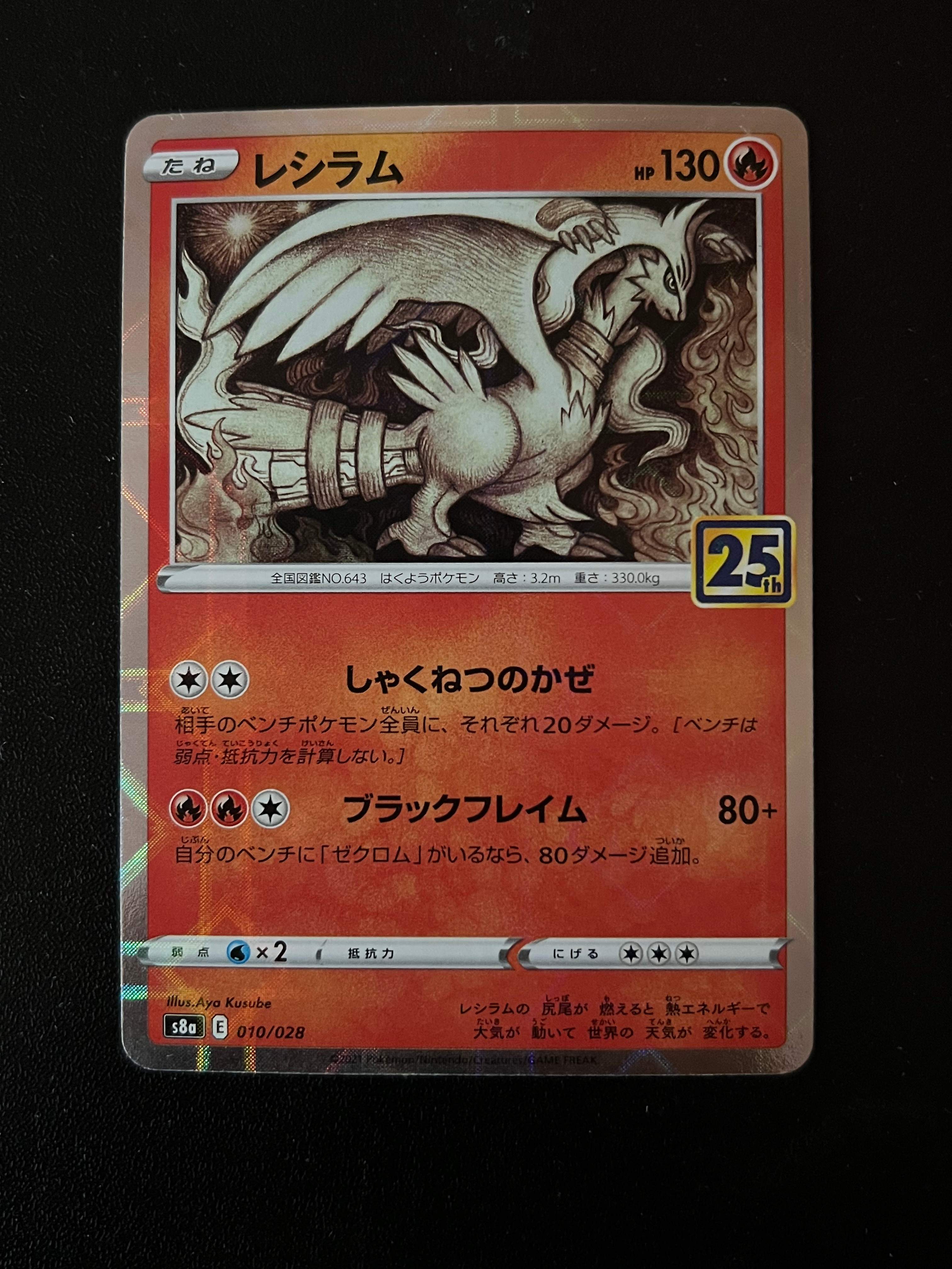 Pokemon TCG PTCG 宝可梦 日文 日版 25周年收藏版 S8a 莱希拉姆 010/028 方块闪 折射闪卡全图闪手绘大手绘 注意细节图 默认白边白点 介意勿拍