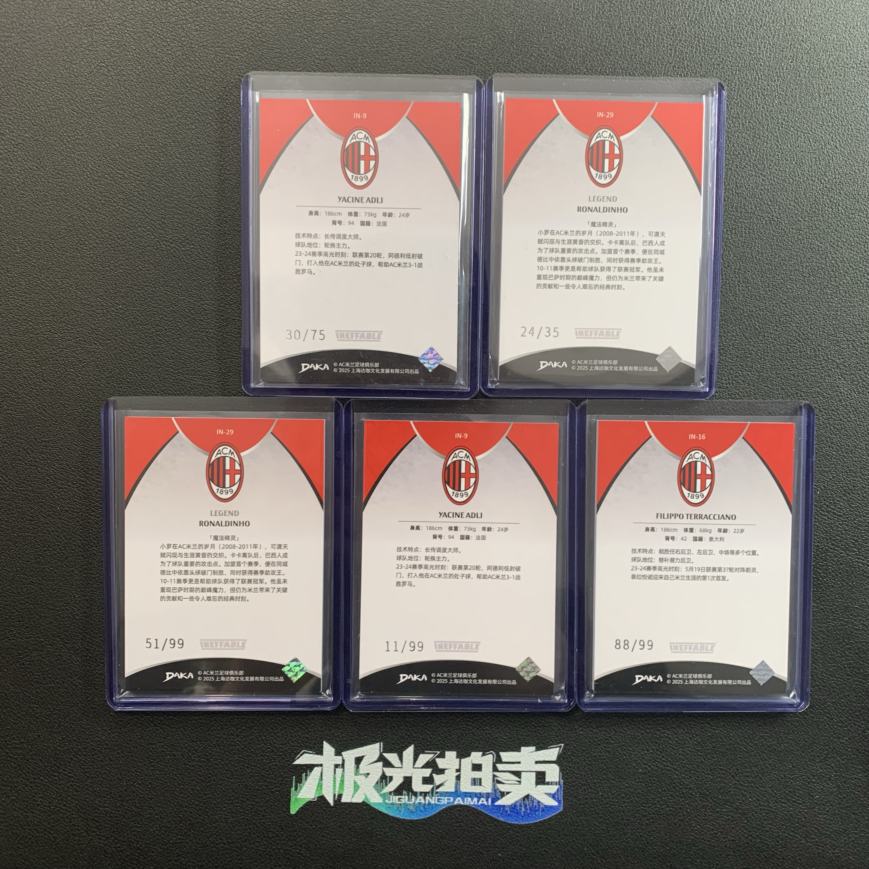 2025 DAKA AC米兰队盒 Ronaldinho 达咖 罗纳尔迪尼奥 小罗 阿德里 泰拉恰诺 35编 75编 99编 红平行 紫平行 银平行 五张打包 不保卡品 收藏必备 t WG花布袋