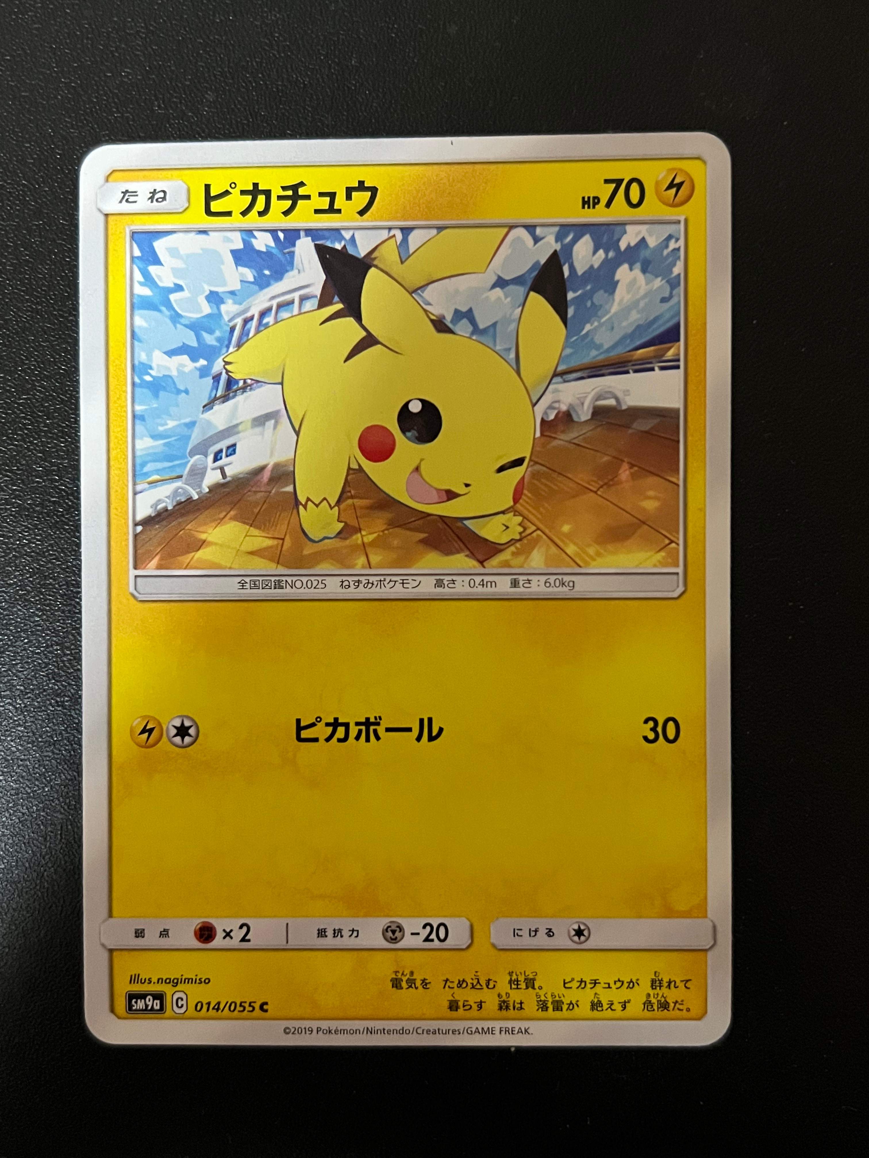 Pokemon TCG PTCG 宝可梦 日文 日版 暗夜同盟 SM9a 皮卡丘 014/055 C 折射闪卡全图闪手绘大手绘 注意细节图 默认白边白点 介意勿拍