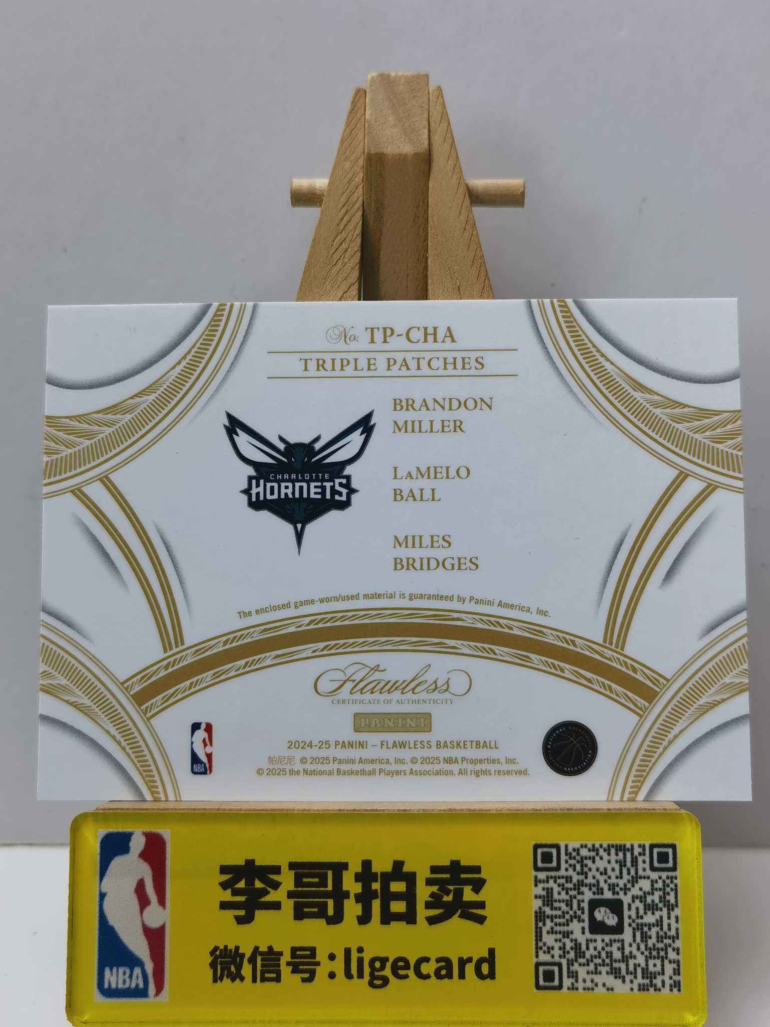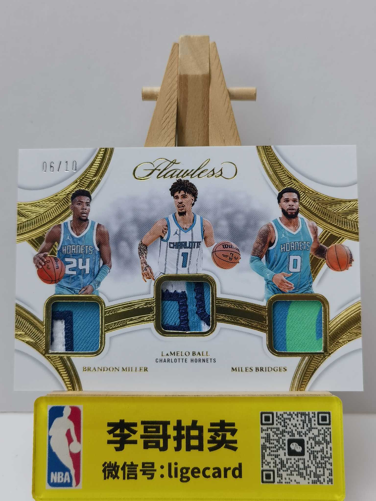2024-25 Panini Flawless Brandon Miller 【李哥代卖】手提 布兰登米勒 米卡尔布里奇斯 拉梅洛鲍尔 06/10编 金平行 三人物料patch 黄蜂 Misty121