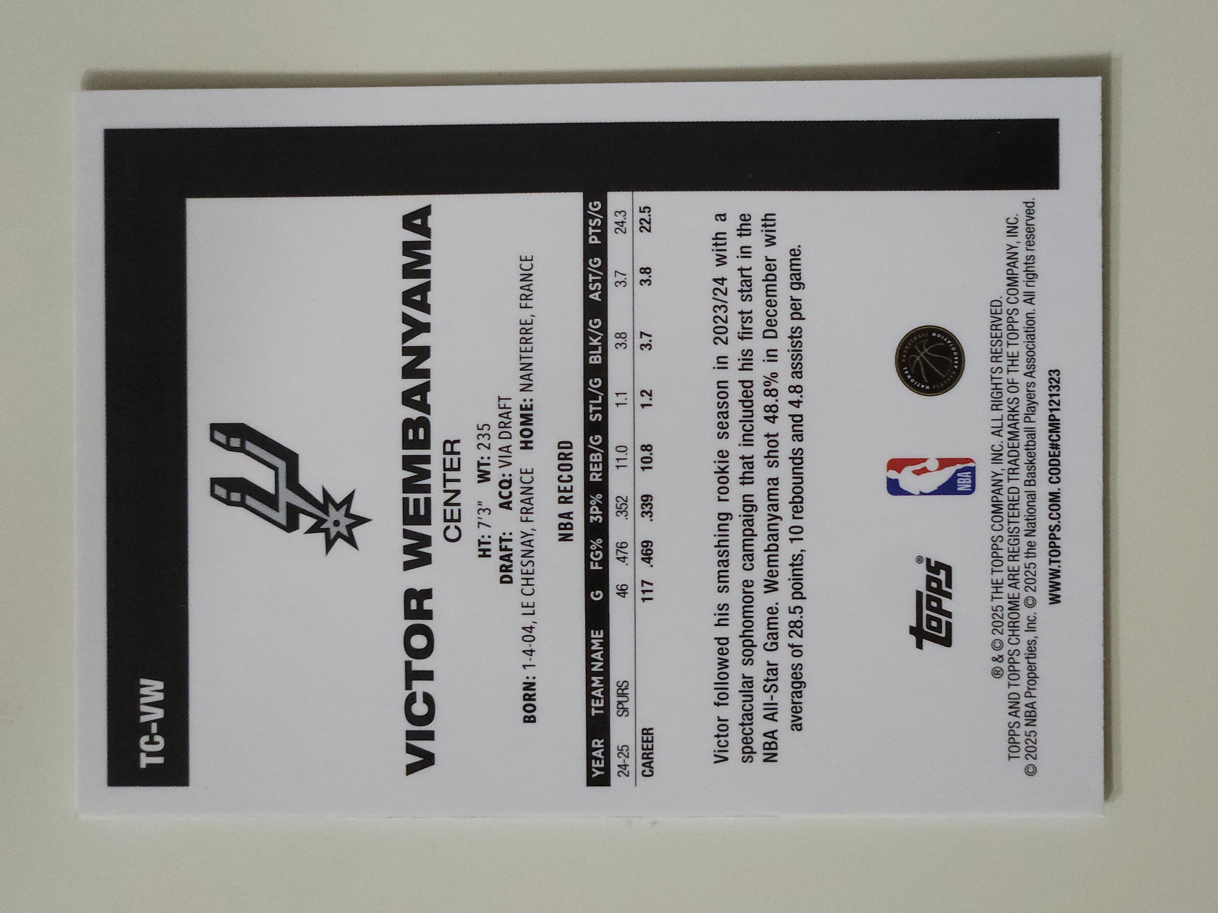 2025-26 Topps Chrome Victor Wembanyama 【流星代拍】维克托 文班亚马 斑马 MOJO折 45周年复古 元年 卡品如图 帅比 B