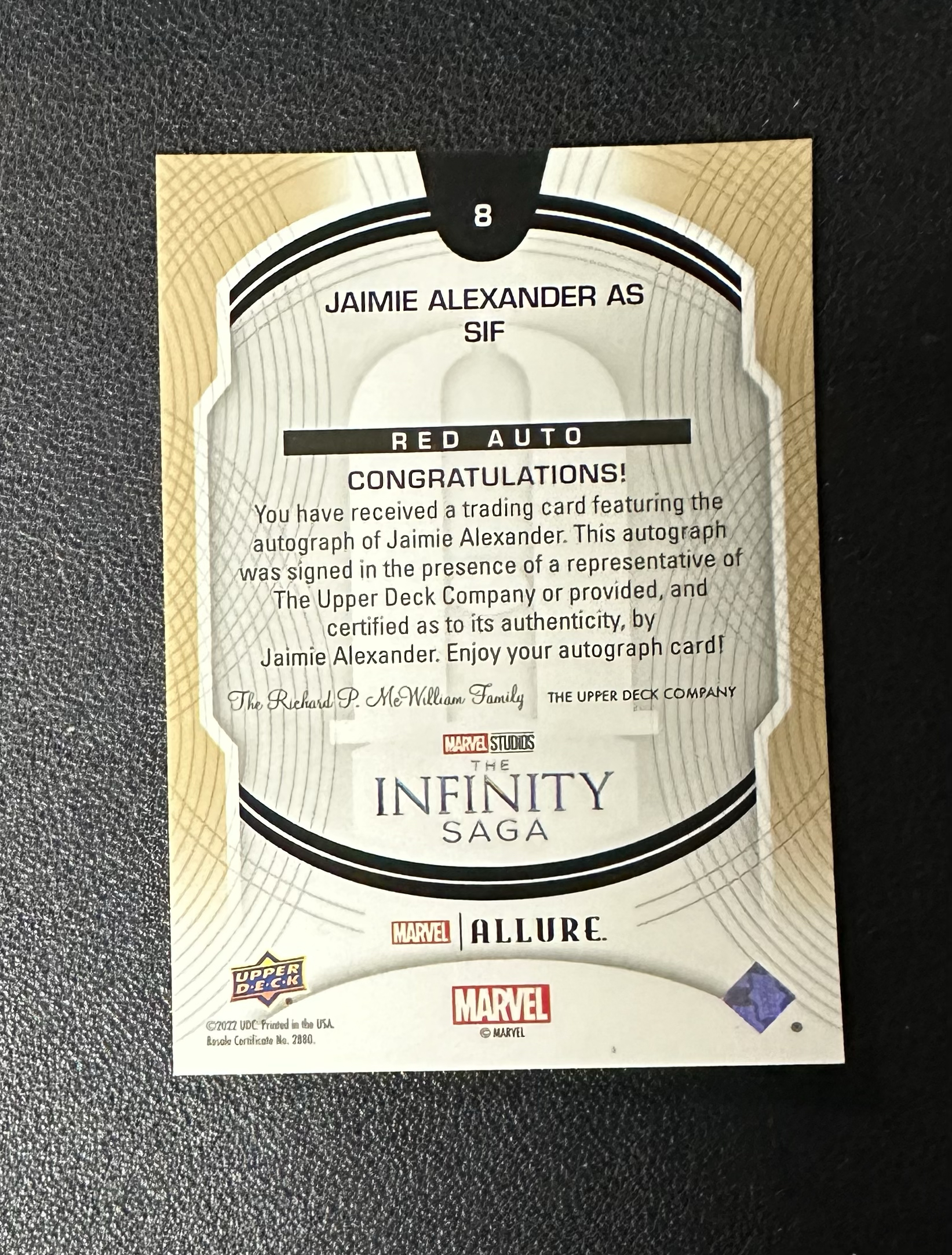 2022 Upper Deck Allure Marvel 漫威 小黑钻 THOR 杰米亚历山大 Jaimie Alexander 饰演 希芙 SIF 签字 卡品如图