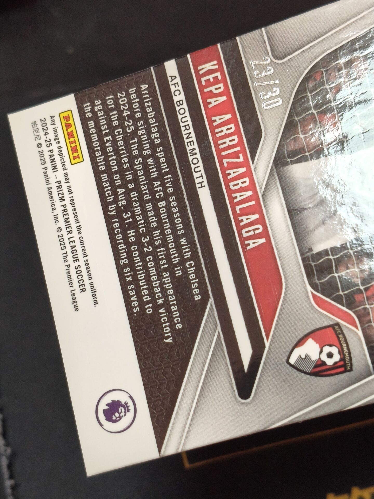 【火箭拍卖 截标预付82%】2024-25 panini prizm kepa arrizabalaga 英超 伯恩茅斯 凯帕 阿里萨瓦拉加 红圈圈折 折射 23/30编 专收必备 瑕疵看图「MTreal100」1203G01兿