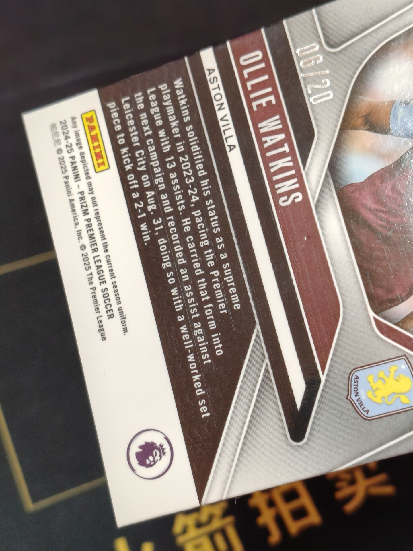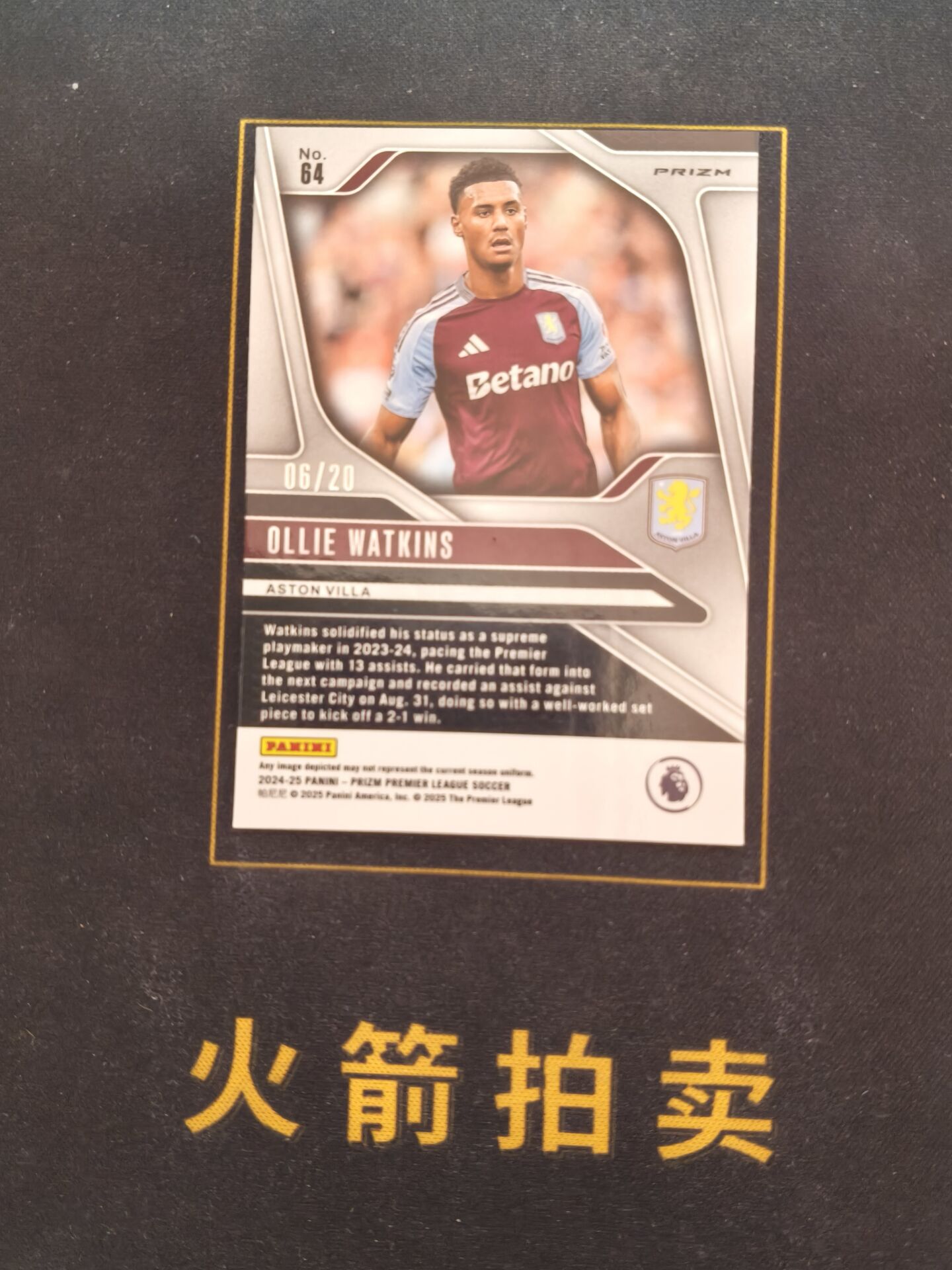 【火箭拍卖 截标预付82%】2024-25 panini prizm ollie watkins 英超 阿斯顿维拉 奥利 沃特金斯 圈圈折 樱花折 折射 6/20编 低编 专收必备 瑕疵看图「MTreal100」1203G01兿