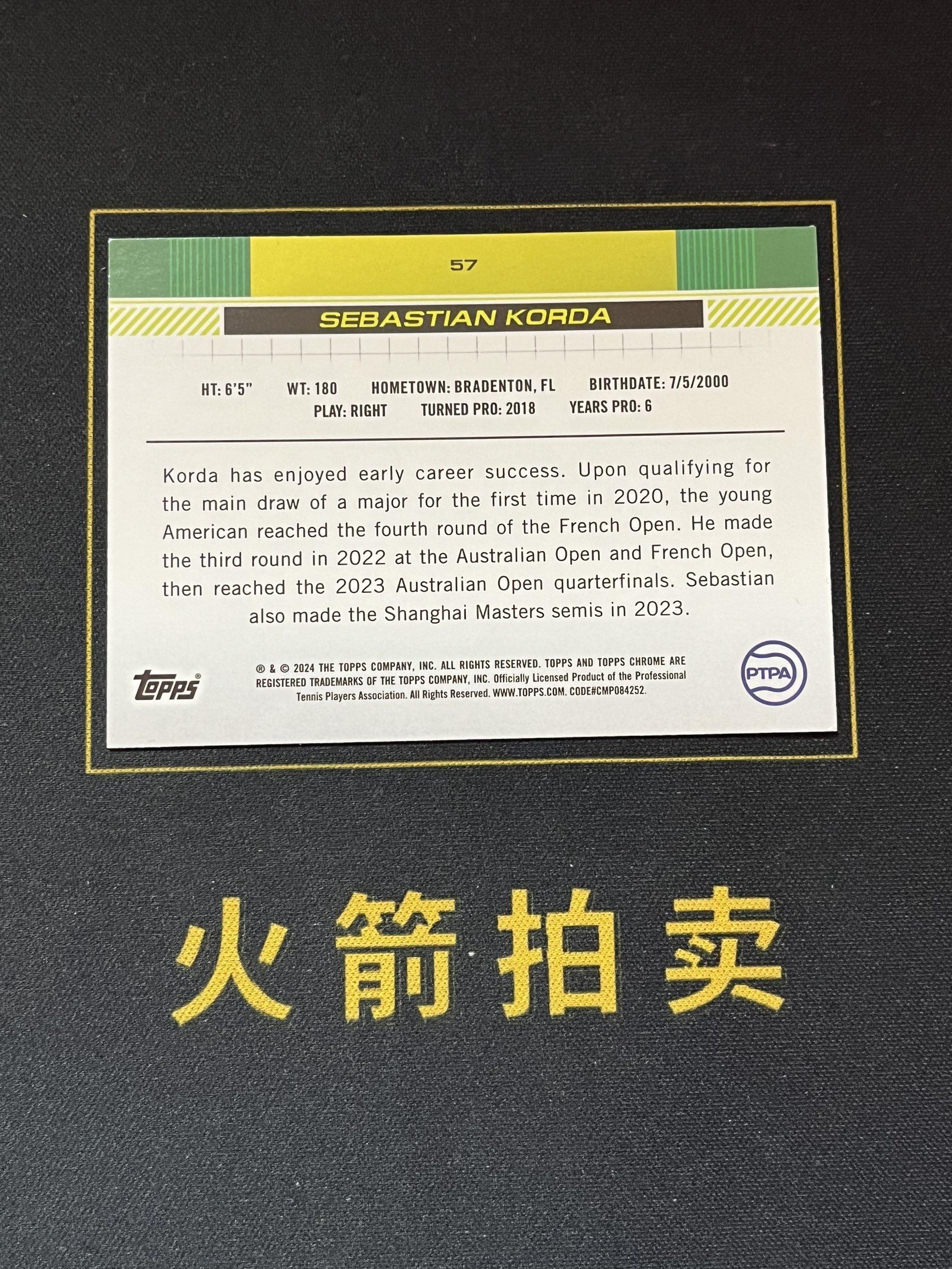 【火箭拍卖 截标预付82%】2024 topps chrome sebastian korda 网球 塞巴斯蒂安 科达 1ST 蓝折 折射 212/250编 专收必备 瑕疵看图「MTreal100」1203Q02様