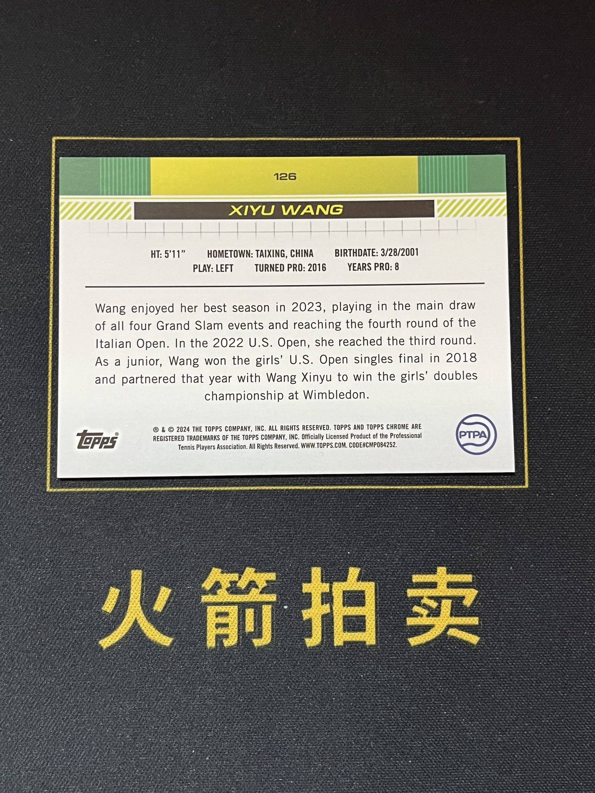 【火箭拍卖 截标预付82%】2024 topps chrome xiyu wang 网球 王曦雨 1ST 蓝折 折射 113/250编 专收必备 瑕疵看图「MTreal100」1203Q02様