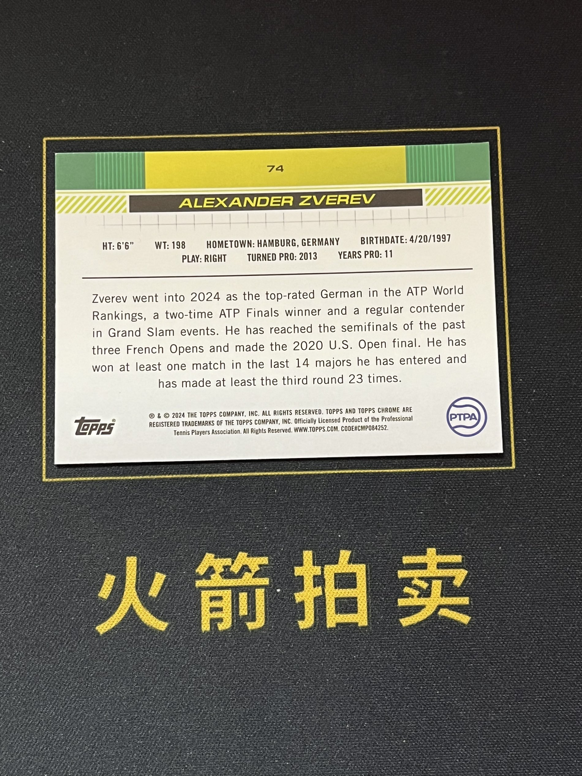 【火箭拍卖 截标预付82%】2024 topps chrome alexander zverev 网球 亚历山大 兹维列夫 1ST 紫折 折射 签字 26/499编 专收必备 瑕疵看图 2「MTreal100」1203Q02様