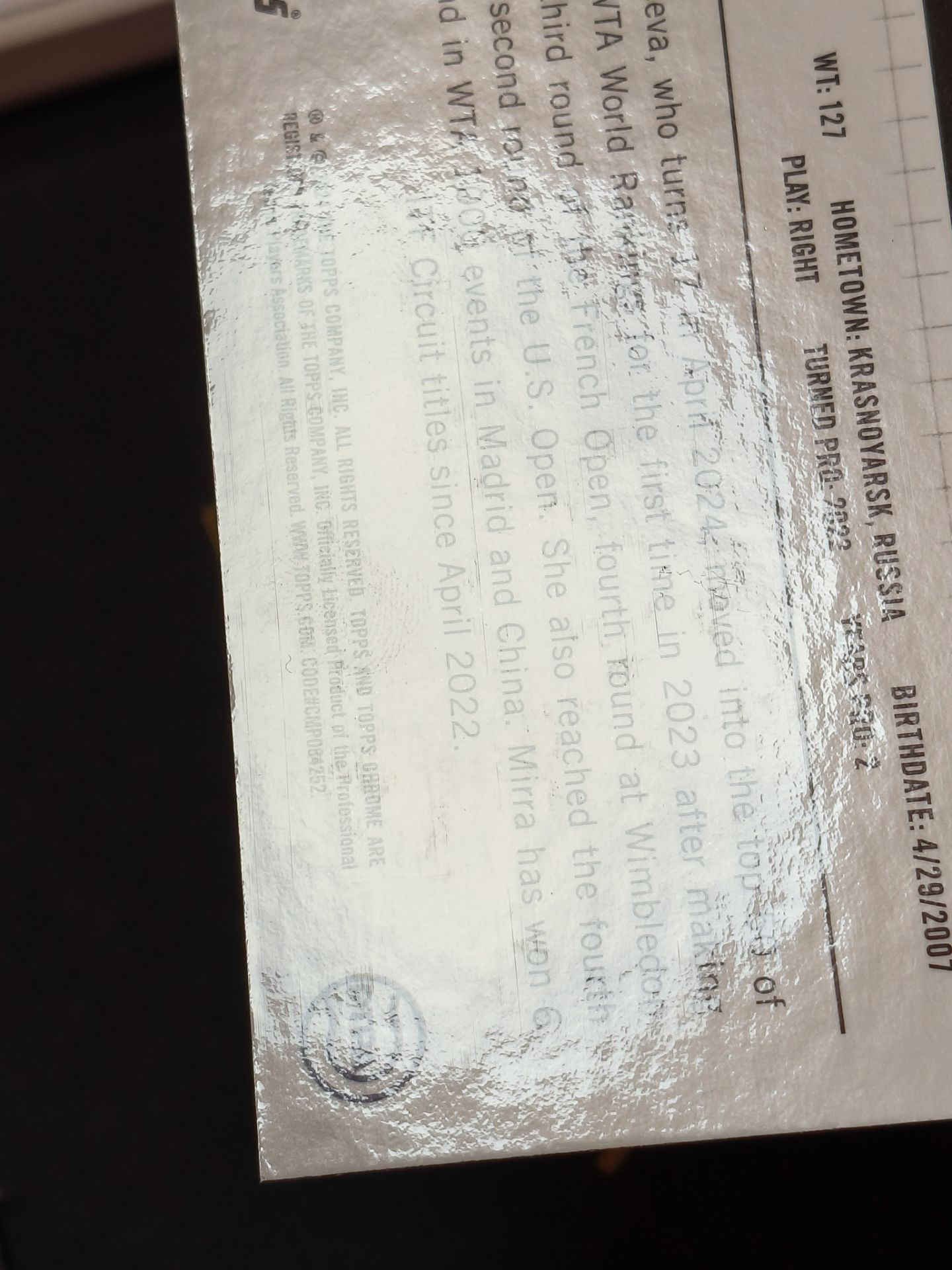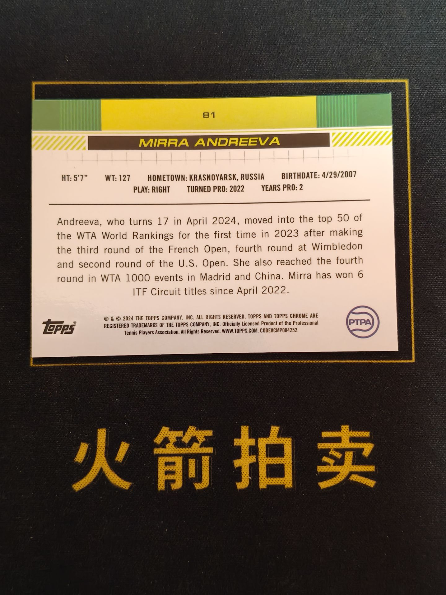 【火箭拍卖 截标预付82%】2024 topps chrome mirra andreeva 网球 米拉 安德烈耶娃 RC 新秀 菠萝折 折射 7/77编 专收必备 瑕疵看图「MTreal100」1203G02兿