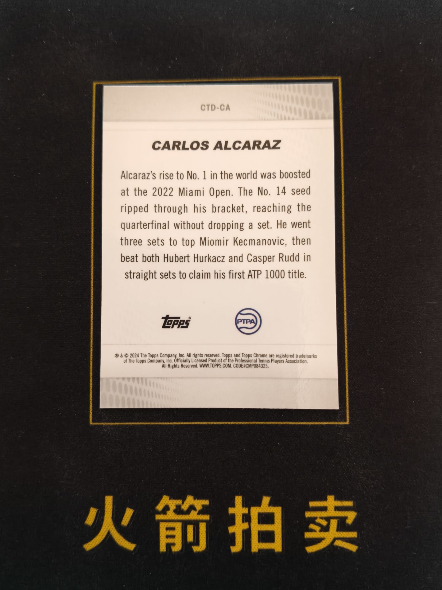 【火箭拍卖 截标预付82%】2024 topps chrome carlos alcaraz 网球 卡洛斯 阿尔卡拉斯 金折 折射 captured 特卡 捧杯 奖杯 14/50编 专收必备 瑕疵看图「MTreal100」1203G02兿