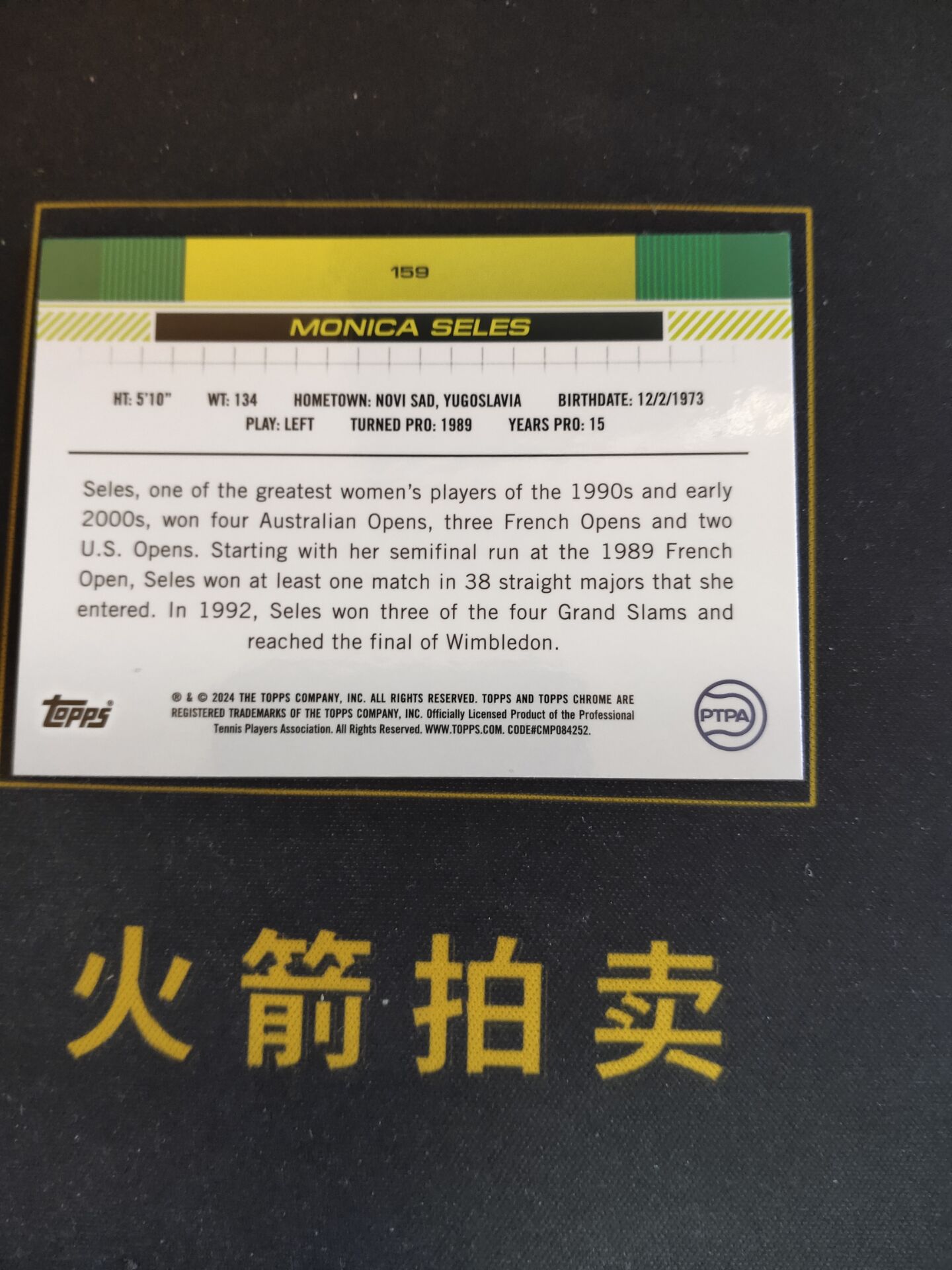 【火箭拍卖 截标预付82%】2024 topps chrome monica seles 网球 莫妮卡 塞莱斯 紫折 折射 195/499编 专收必备 瑕疵看图「MTreal100」1203Q03様緲